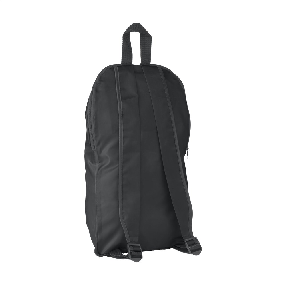 Superlichte, opvouwbare rugzak van sterk 190T polyester. Met verstelbare schouderriemen, draaglus en karabijnhaak aan de pouch. Afm. uitgevouwen 22 x 40 cm.