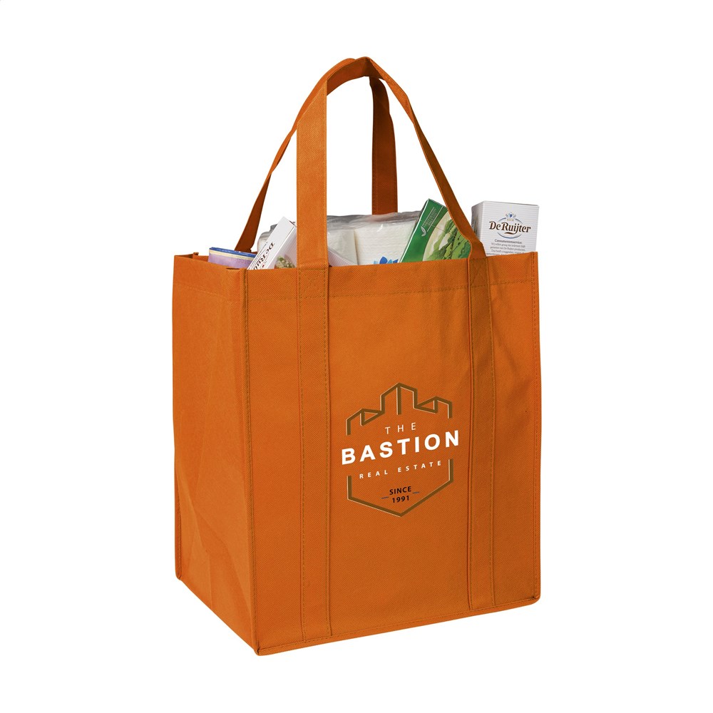 Praktische, extra ruime nonwoven (80 g/m²) winkeltas: een superlichte en sterke kunstvezelstof....meer