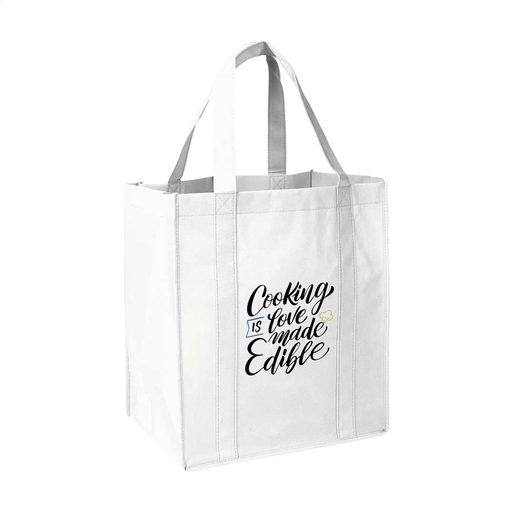 Praktische, extra ruime nonwoven (80 g/m²) winkeltas: een superlichte en sterke kunstvezelstof....meer