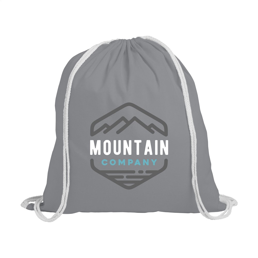 Rugzak van 100% katoen (125 g/m²). Met aanrijgkoord. Inhoud ca. 8 liter.