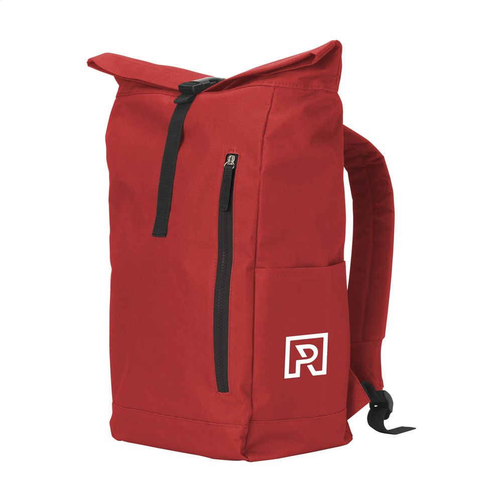 Stoere, praktische urban rugzak van sterk 600D polyester met waterbestendige PVC binnenzijde, gedeeltelijk nylon gevoerd. De rugzak heeft één groot binnenvak, een insteekvak aan beide zijdes en een groot ritsvak aan de voorzijde. Met foam rugzijde voor meer draagcomfort, gewatteerde, verstelbare schouderriemen en draaglus. Met oprolbare sluiting en handig kliksysteem. De perfecte tas voor dagelijks gebruik. Inhoud ca. 18 liter.