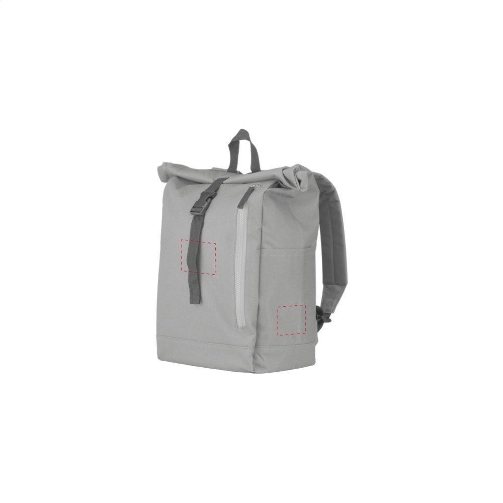 Stoere, praktische urban rugzak van sterk 600D polyester met waterbestendige PVC binnenzijde, gedeeltelijk nylon gevoerd. De rugzak heeft één groot binnenvak, een insteekvak aan beide zijdes en een groot ritsvak aan de voorzijde. Met foam rugzijde voor meer draagcomfort, gewatteerde, verstelbare schouderriemen en draaglus. Met oprolbare sluiting en handig kliksysteem. De perfecte tas voor dagelijks gebruik. Inhoud ca. 18 liter.