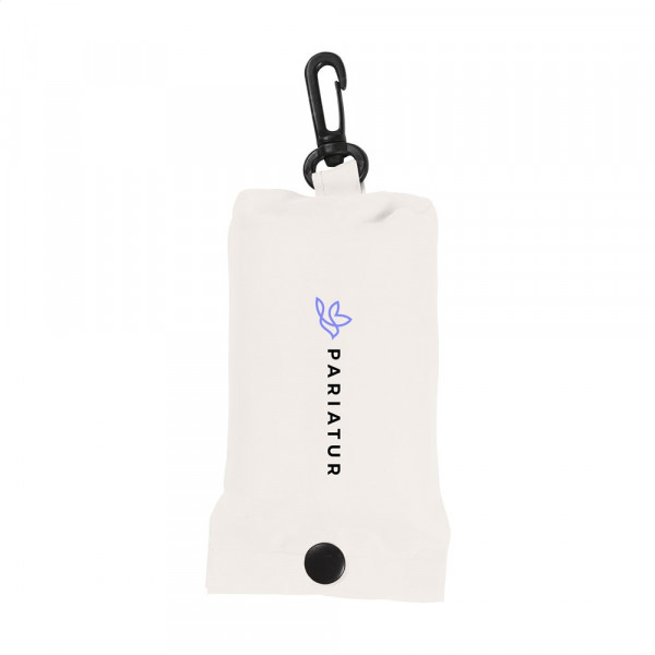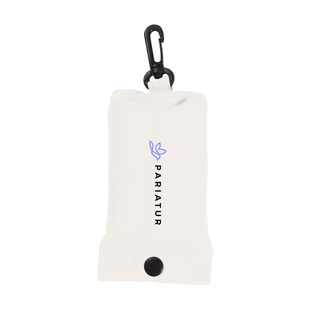 Opvouwbare winkeltas van 190T RPET polyester; gemaakt van gerecyclede PET-flessen. In etui met drukknoop en karabijnhaak. Afm. uitgevouwen 53 x 38 cm.