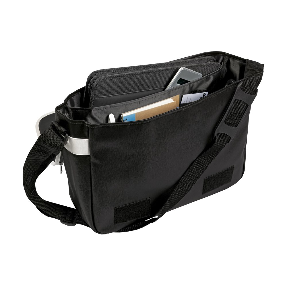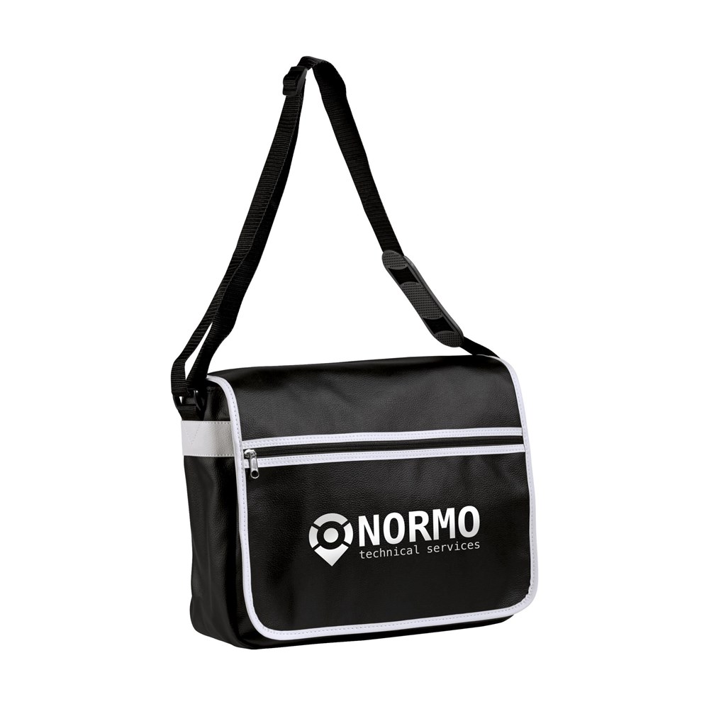 Stevige imitatieleren schouder-/documententas in een retro look. Met overslag voorzien van ritsvak en klittenbandsluiting, extra ruim hoofdvak, insteekvak, insteekvakjes voor balpennen en telefoon en verstelbare schouderriem met schouderstuk.