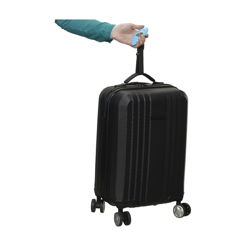 Draagbare, digitale bagageweegschaal. Voorzien van een digitaal display met preciese weergave van het gewicht in kg en lb tot maximaal 40 kg/88 lb. Met stevig geweven nylon koord met buckle voor het bevestigen van bagage. Het display schakelt automatisch uit. Incl. celbatterij. Per stuk in doos.