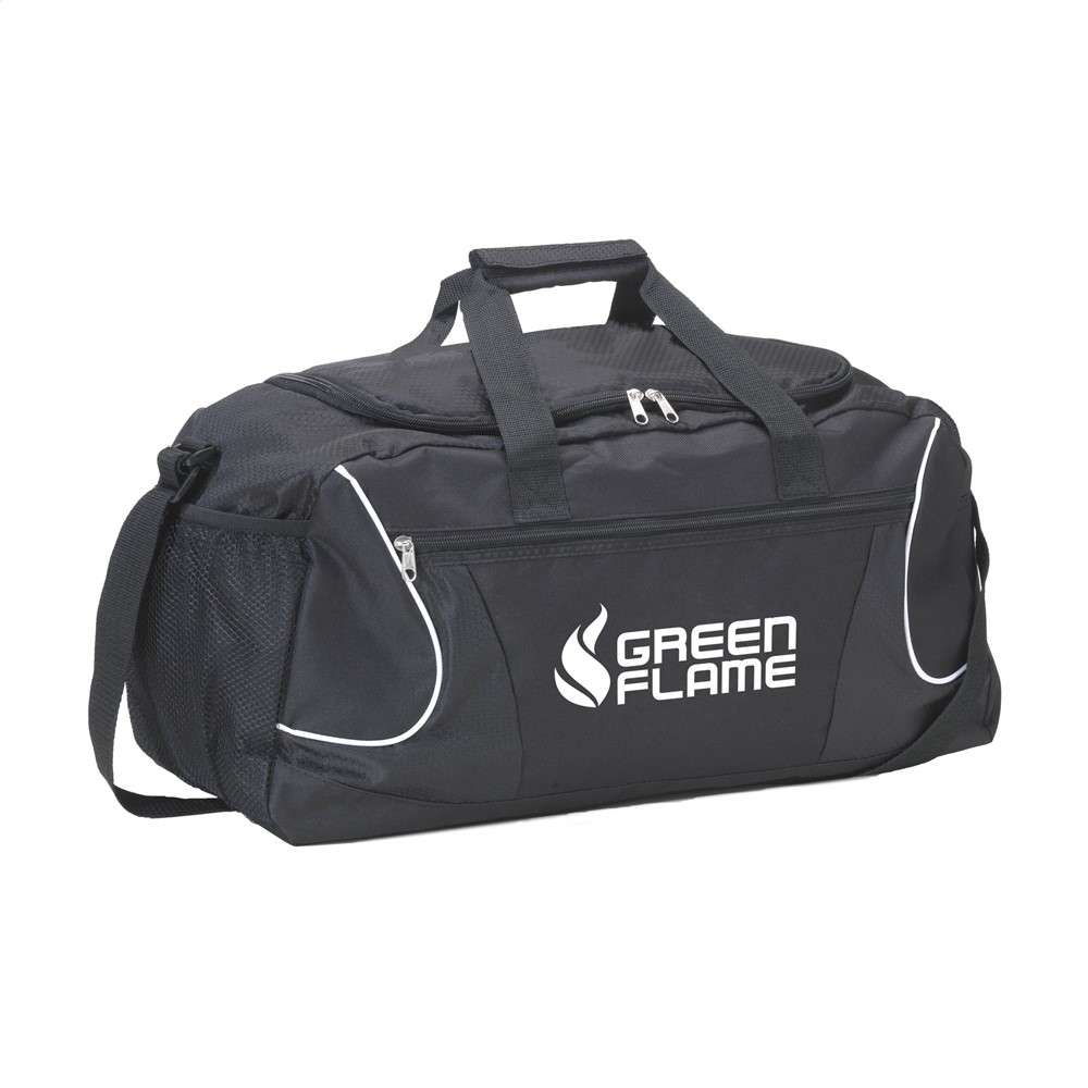 Ruime sport-/reistas van 600D polyester. Met ritsvak aan de voorzijde, gaasvak, 2 handgrepen en...meer