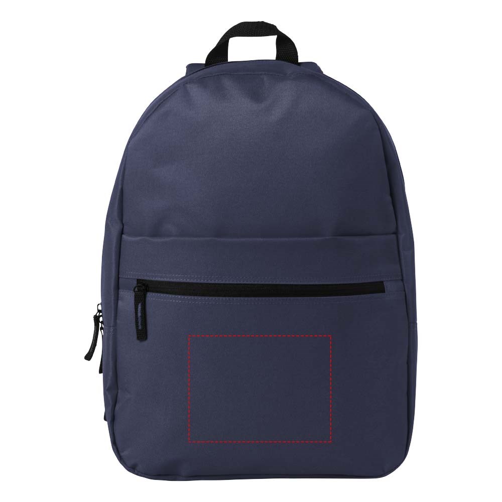 Rugzak, hoofdvak met ritssluiting, voorvak met ritssluiting en rode details. Opberg vak aan de voorkant met klittenbandsluiting. Verstelbare, gevoerde schouderbanden en een verstevigde handgreep.