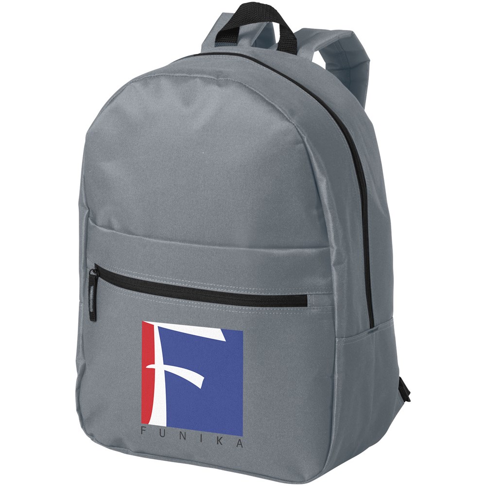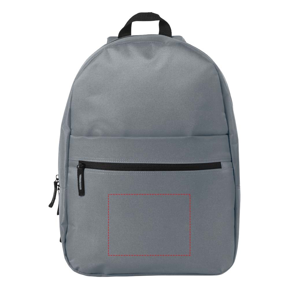 Rugzak, hoofdvak met ritssluiting, voorvak met ritssluiting en rode details. Opberg vak aan de voorkant met klittenbandsluiting. Verstelbare, gevoerde schouderbanden en een verstevigde handgreep.