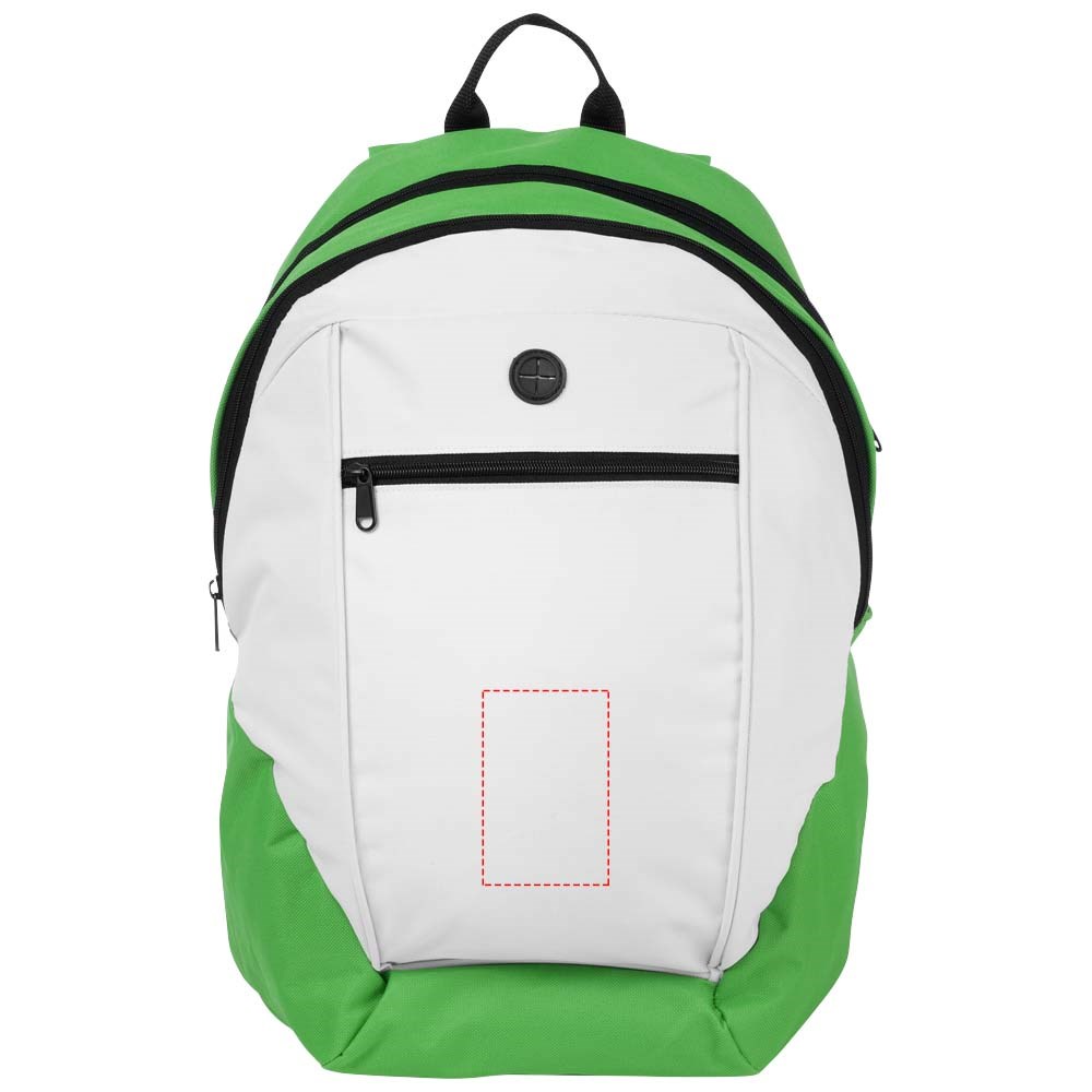 Groot hoofdvak met ritssluiting. Middenvak met ritssluiting en ritsvakken aan de binnenzijde. Voorvak met ritssluiting en oortelefoondoorgang. Verstelbare, gecapitonneerde schouderbanden en verstevigde topgreep.