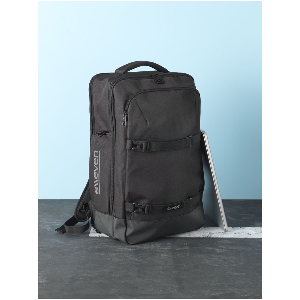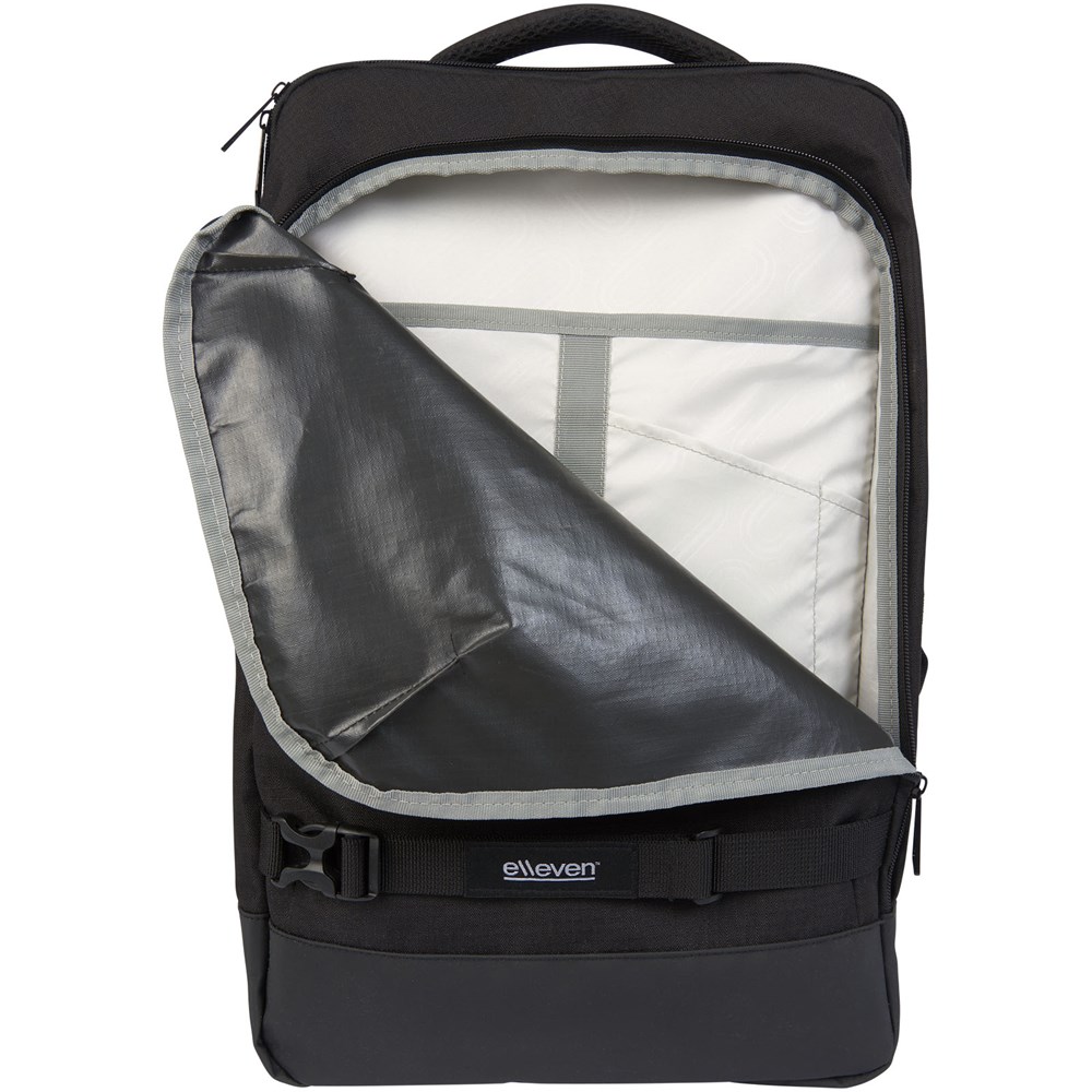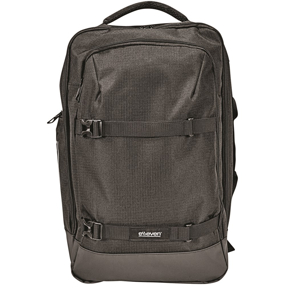 De elleven-laptop-rugzak met twee hengsels is een veelzijdige rugzak ontworpen om uw zakelijke benodigdheden of reisartikelen mee te nemen. De binnenkant van deze rugzak bevat elastische compressiebanden om al uw spullen op hun plek te houden. Deze tas heeft het allemaal, met een TSA-vriendelijke 15-inch laptop compartiment, verstelbare draagbanden en een handgreep aan de zijkant voor gemakkelijk pakken en RFID-bescherming.