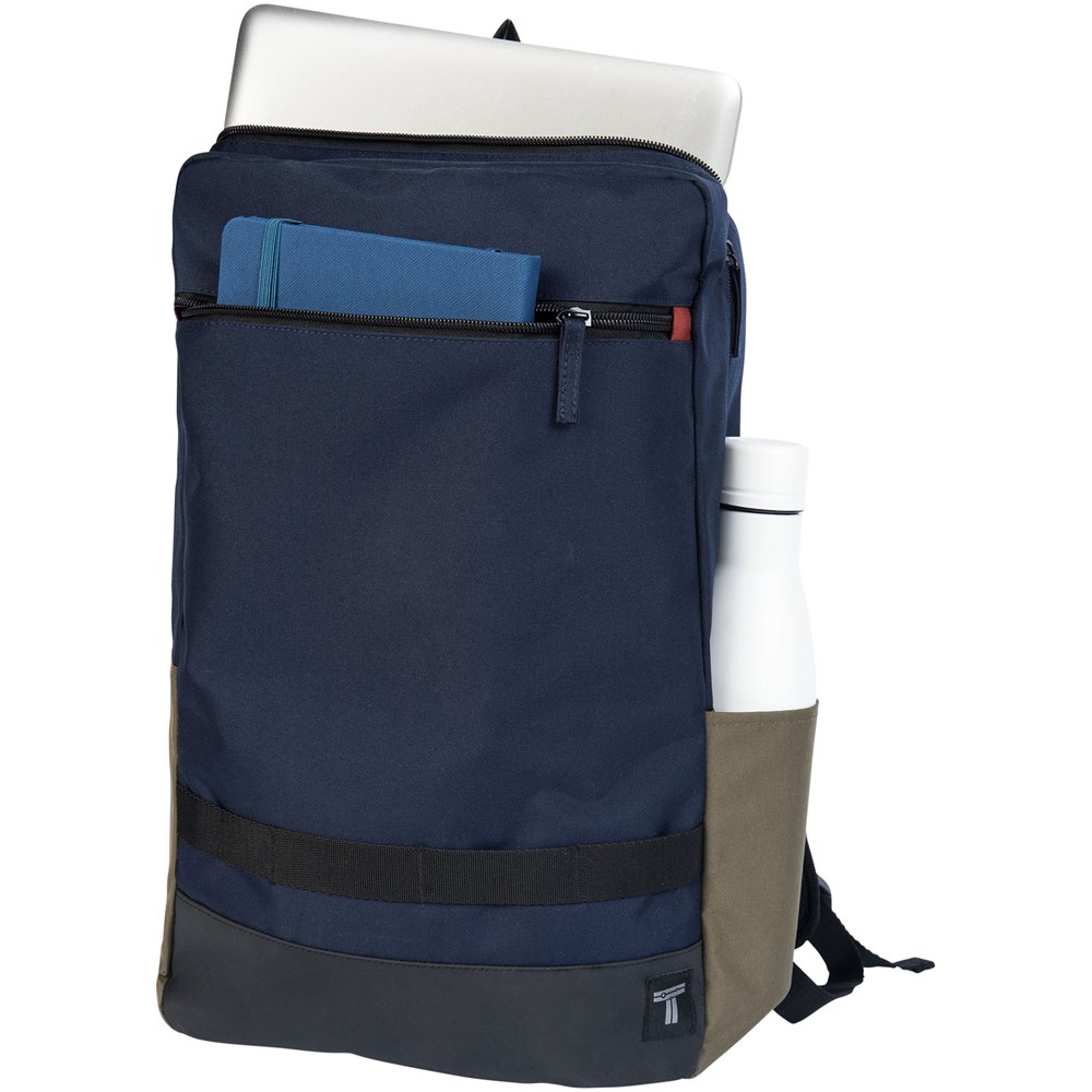 De Tranzip Case 15” Computer Backpack bevat een 15-inch computerhoes zodat je de laptop overal mee naartoe kunt nemen. De voorzijde van deze tas biedt handige bevestigingen voor karabijnhaken, een zijvak voor een waterfles, beklede accenten en een trolleyhoes.. 300D polyester buitenkant, 210D voering.