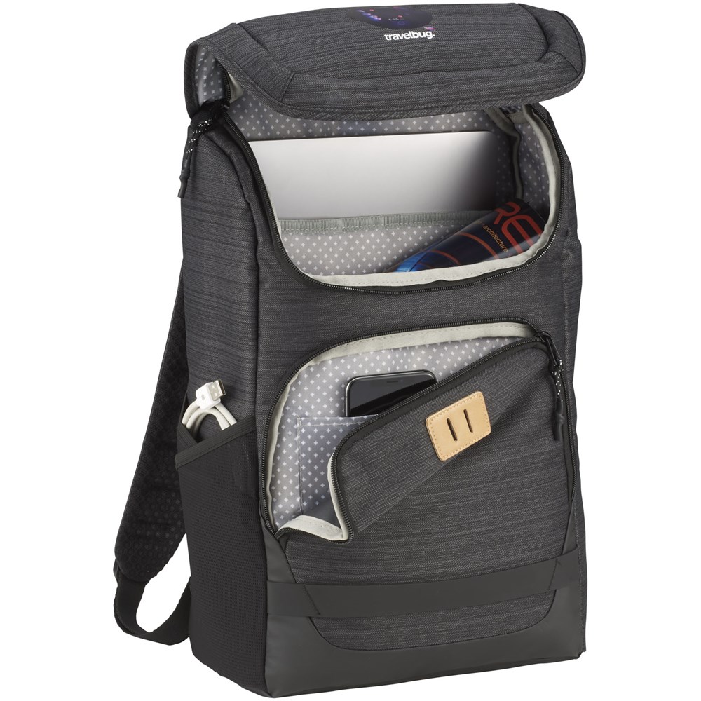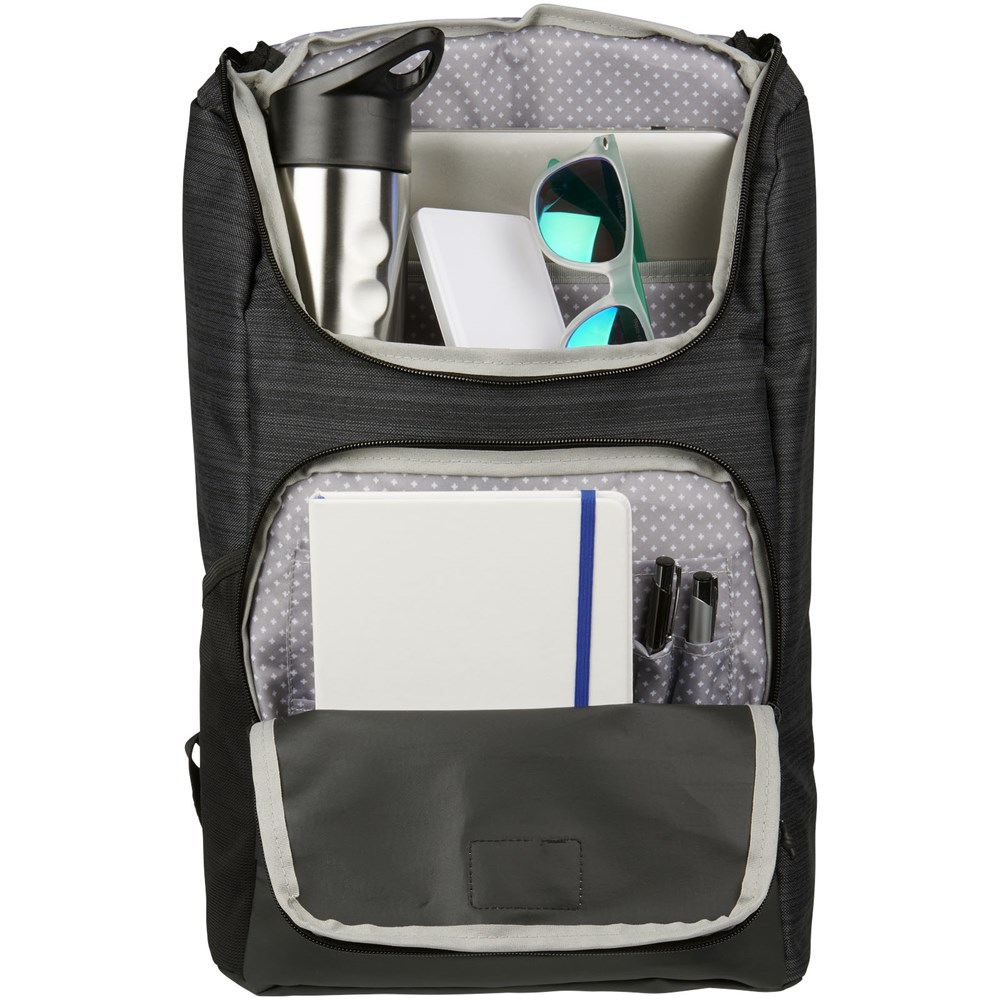 Een laptop rugzak voor dagelijks gebruik. Voorzien van een 15” laptophoes in het hoofdcompartiment, een gemakkelijk toegankelijk ritsvak op de voorflap en een voorvak met rits met een handig binnenvakje. Deze rugzak bevat upgrades, zoals hoogwaardig afdrukmateriaal, bedrukte voering, vinyl label en verwisselbare ritstrekkers. Toegevoegde onderdelen zoals een mesh vak voor je waterfles en siliconen handgreep aan de onderkant maken deze tas tot een ware musthave.