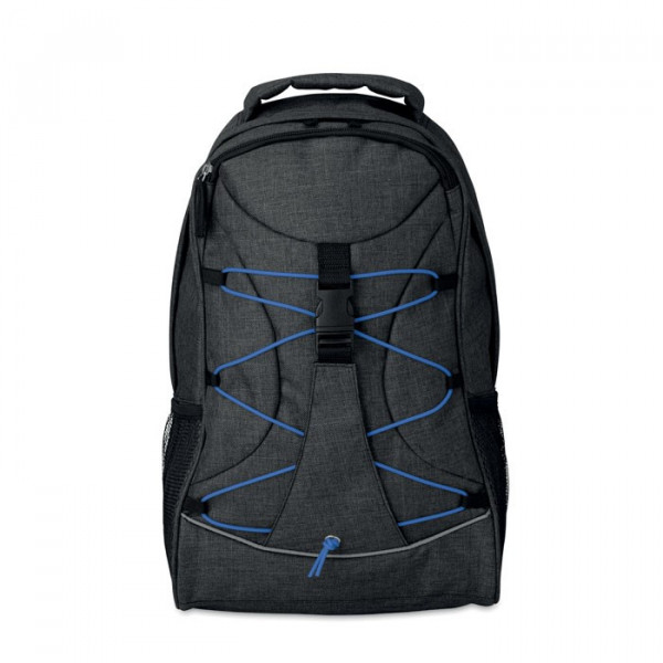 2-tone polyester rugtas van 600D met gekleurde glow in the dark koord aan de voorkant. Mesh zakken aan beide zijden.