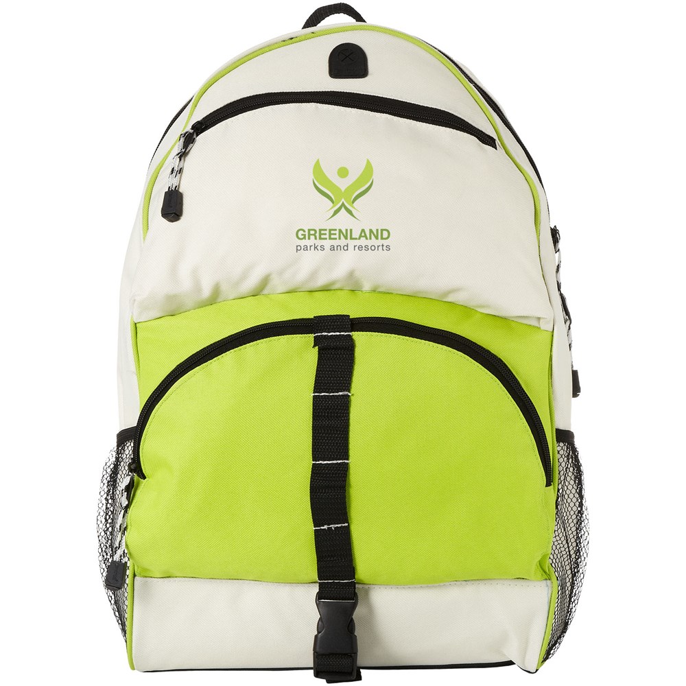 Rugzak met gevoerde schouderbanden, 2 gaasvakken aan de zijkant, afneembare telefoonhoes, voorvak met rits voor MP3-/MP4-speler en meerdere haakjes voor sleutels. Met oortelefoondoorgang.