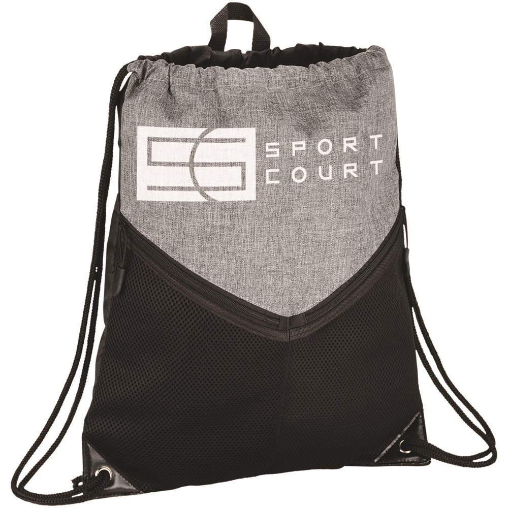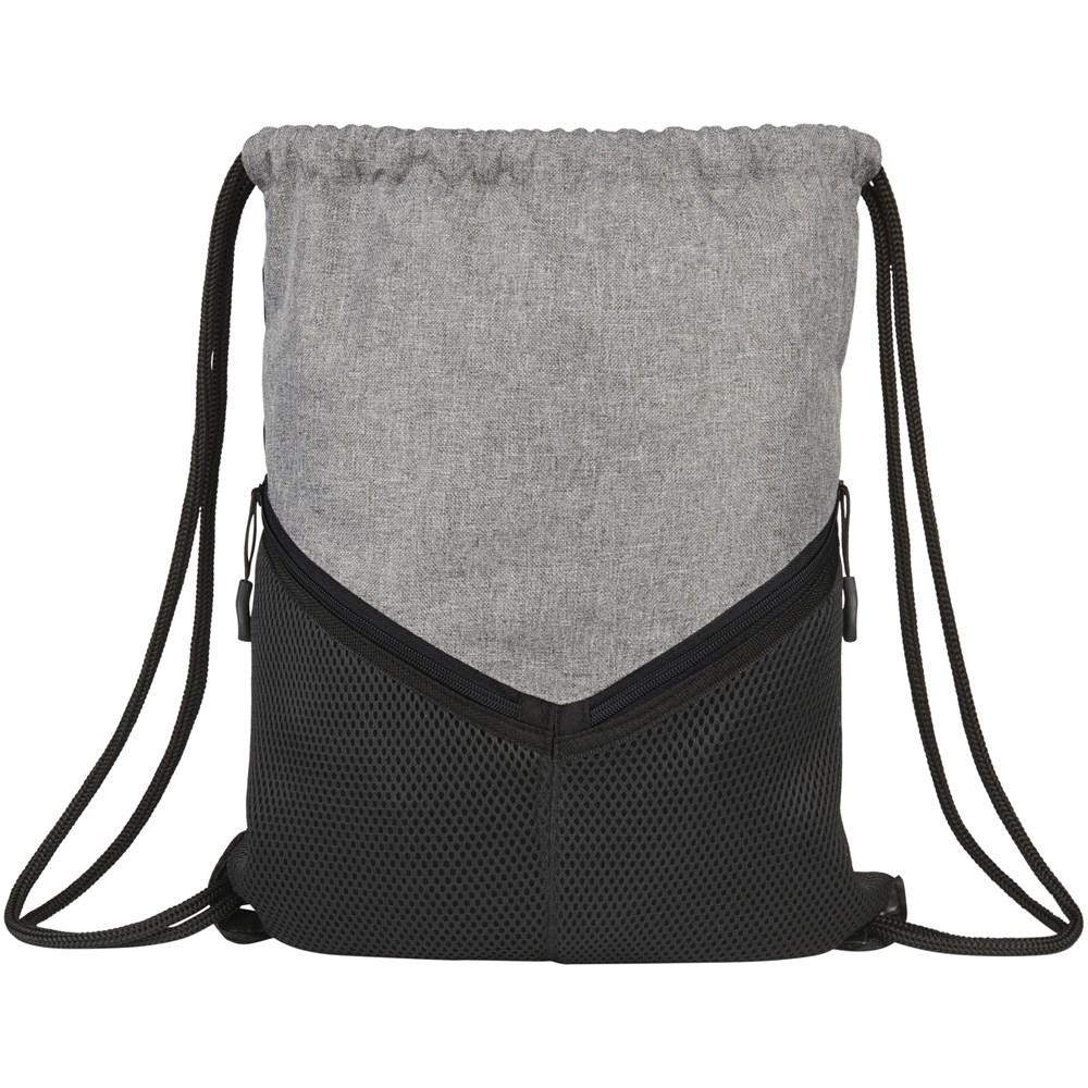 Een sportieve rugzak met een koordsluiting, groot hoofdvak en twee meshvakken met rits.