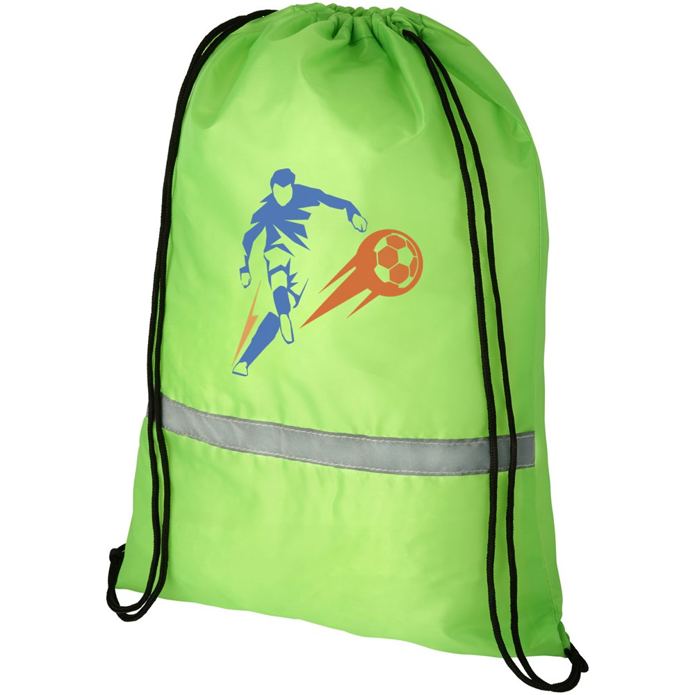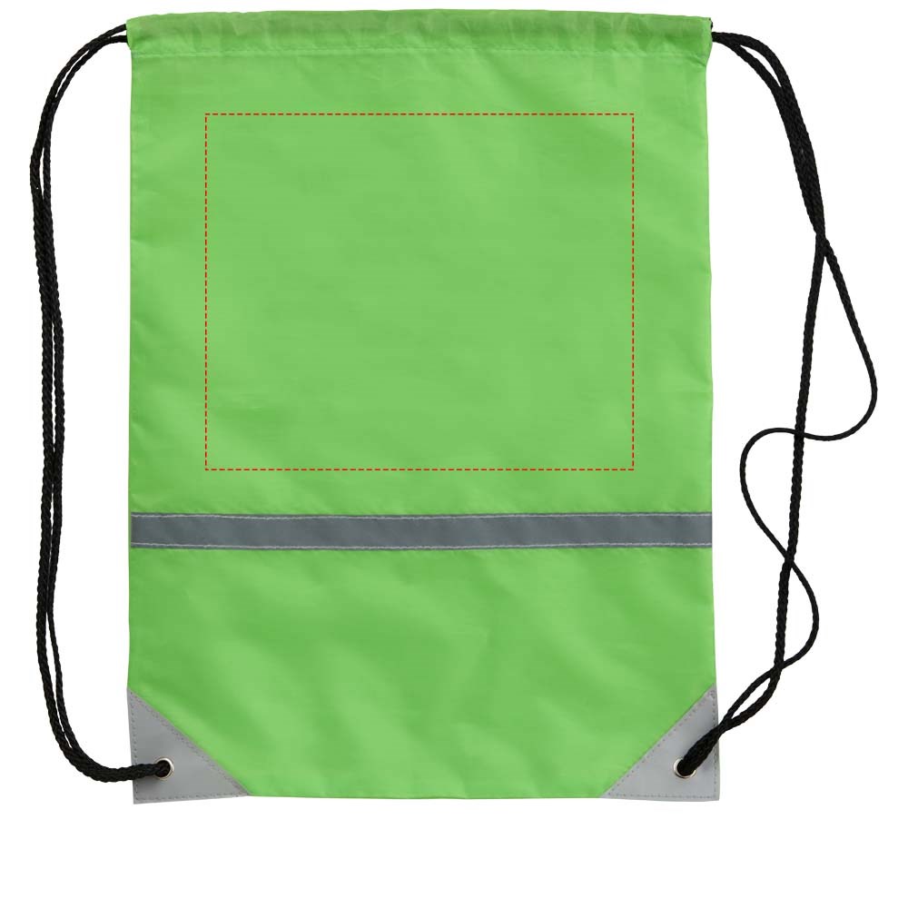 Rugzak met trekkoordsluiting met EN 13356-certificering. Groot hoofdvak met trekkoordsluiting. Voorzien van een reflecterende voorstrip en versterkte hoeken. Geschikt voor een gewicht tot 5 kg. .