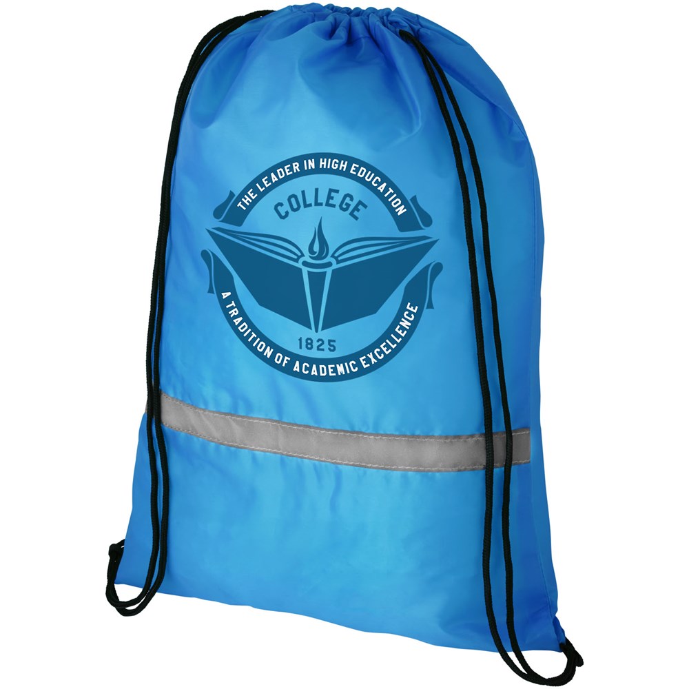 Rugzak met trekkoordsluiting met EN 13356-certificering. Groot hoofdvak met trekkoordsluiting. Voorzien van een reflecterende voorstrip en versterkte hoeken. Geschikt voor een gewicht tot 5 kg. .