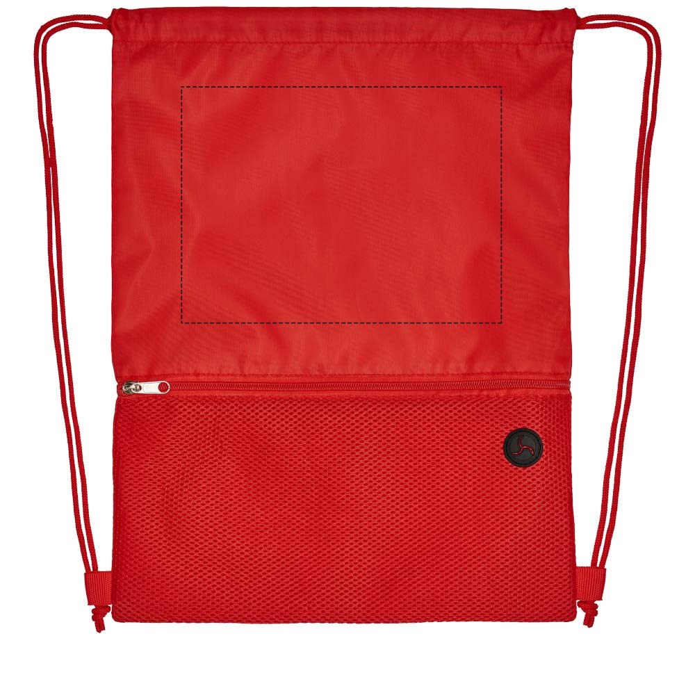 Rugzak met hoofdvak met trekkoordsluiting in bijpassende kleur. Beschikt over een mesh voorvak met rits en een opbergvak voor oortjes. Geschikt voor een gewicht tot 5 kg.