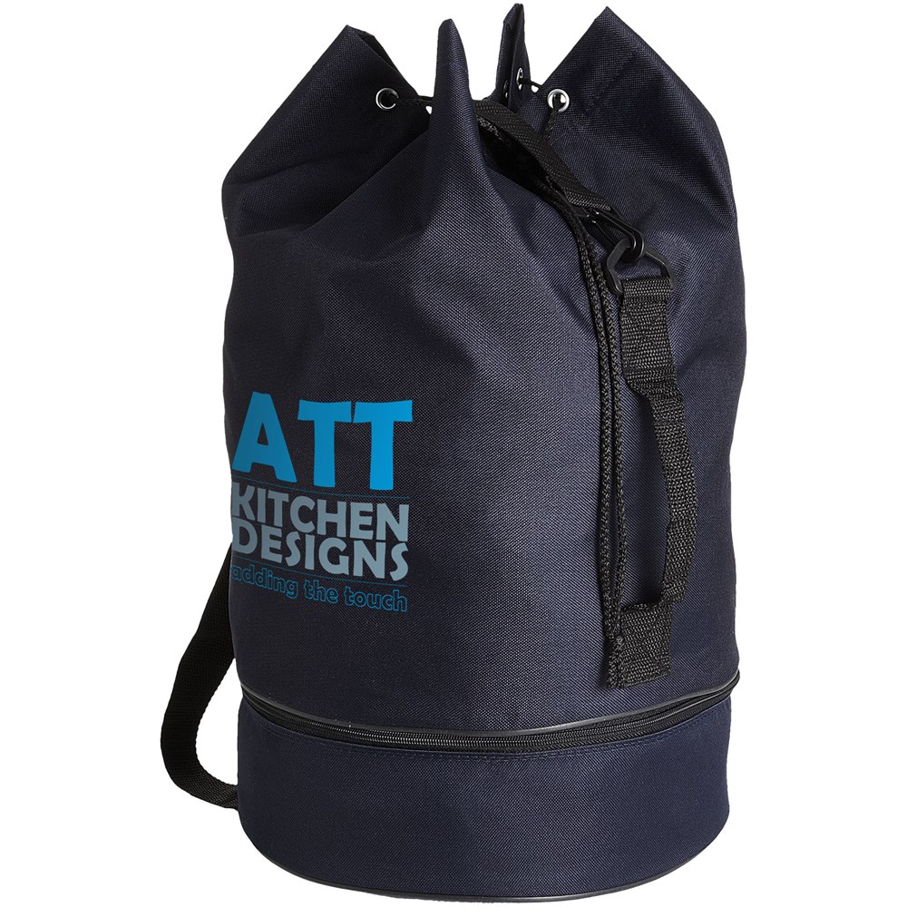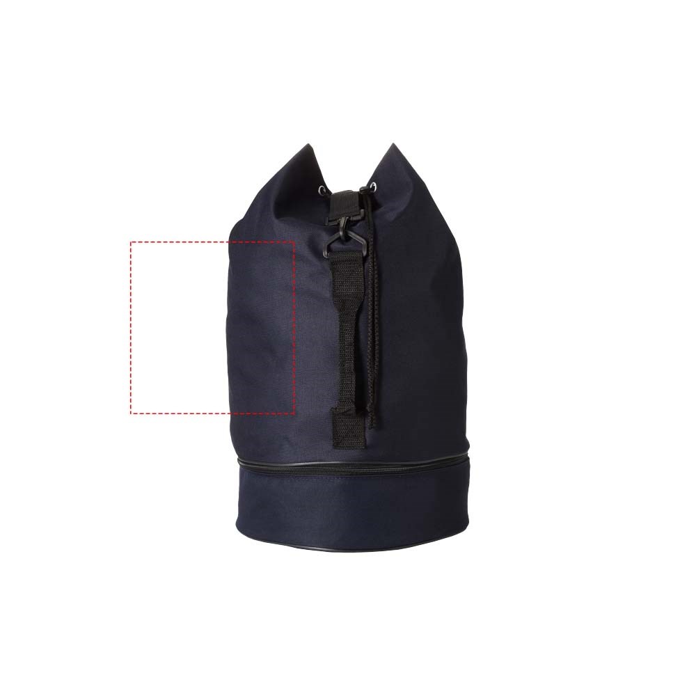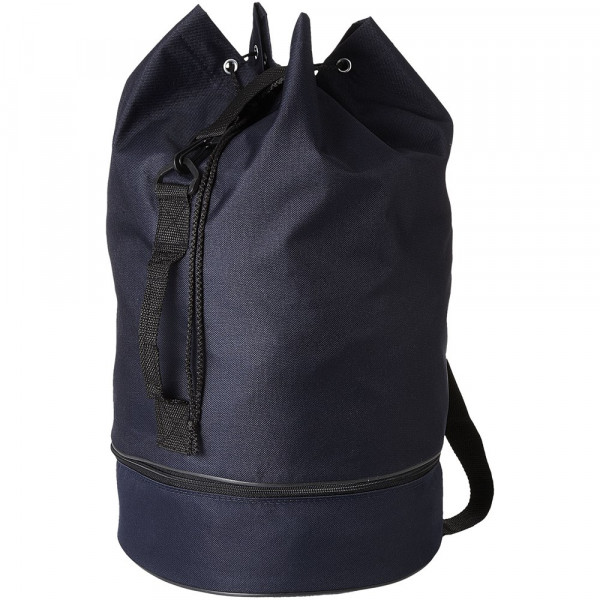 Plunjezak met trekkoordsluiting, zijgreep en verstelbare schouderband. Apart ondervak met rits.meer