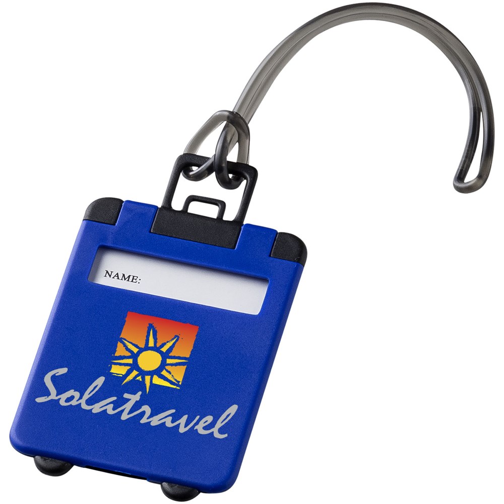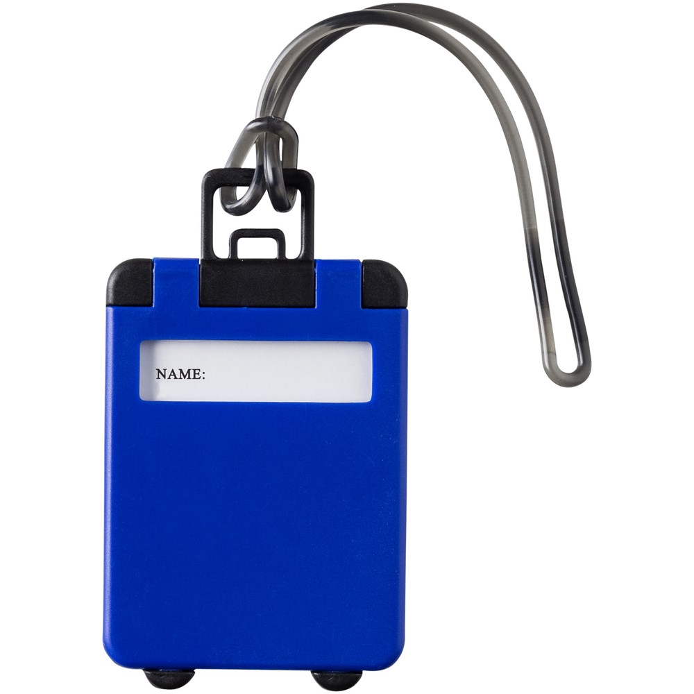 Flip-open identificatielabel met rubberkoord en ID-kaartje.meer