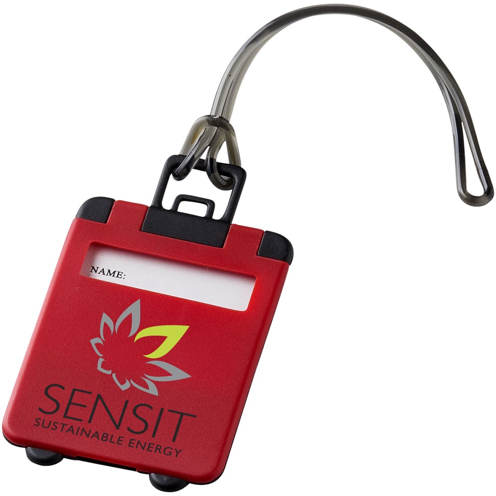 Flip-open identificatielabel met rubberkoord en ID-kaartje.