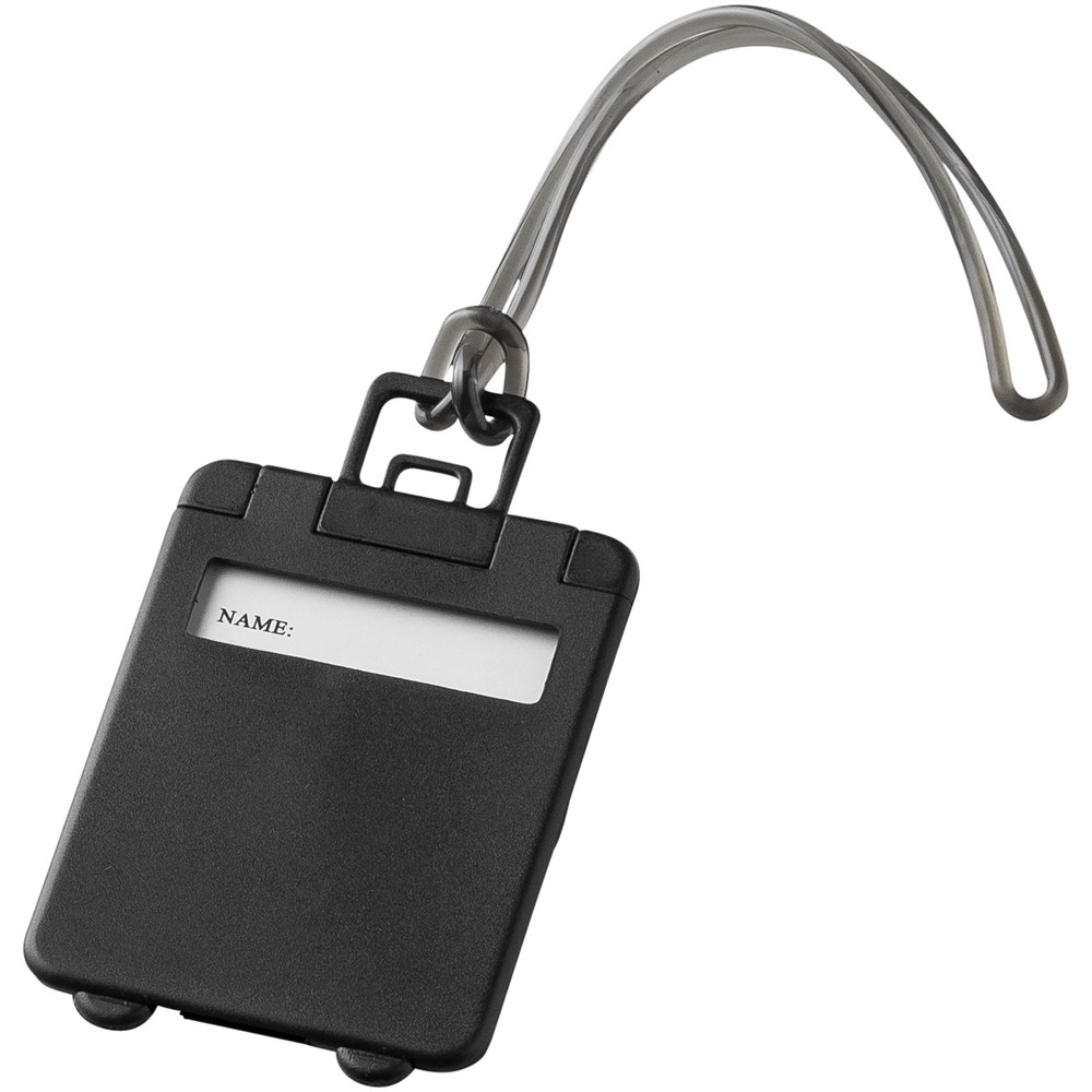 Flip-open identificatielabel met rubberkoord en ID-kaartje.