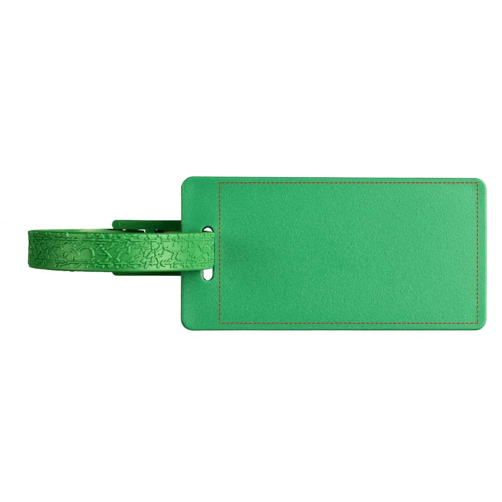 Een stevig bagagelabel compleet met papieren inlay, een doorzichtige beschermhoes en een bijpassend kunststof bandje.