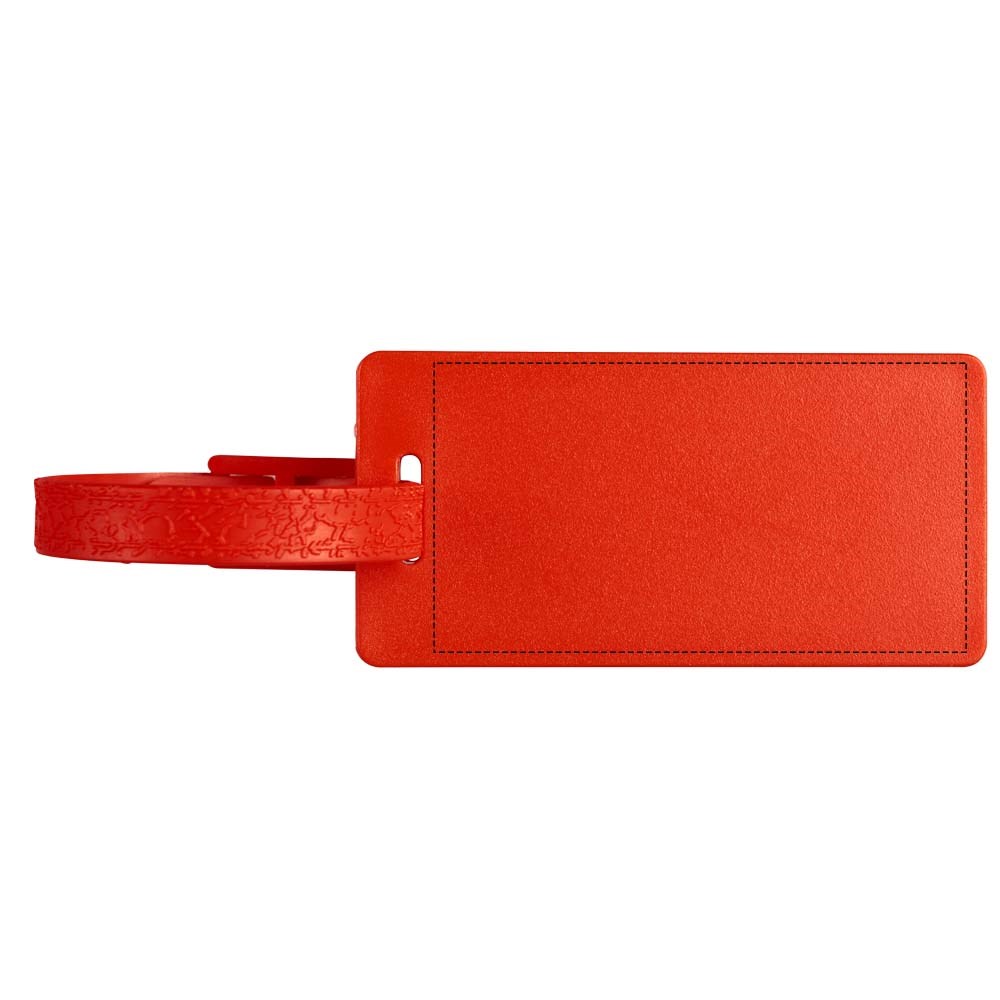 Een stevig bagagelabel compleet met papieren inlay, een doorzichtige beschermhoes en een bijpassend kunststof bandje.