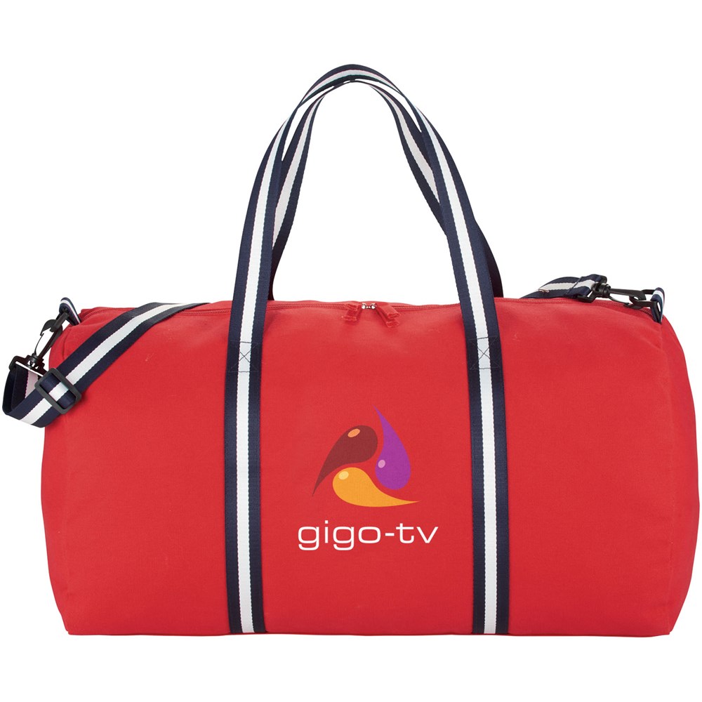 Deze katoenen tas is de perfecte reistas voor je volgende avontuur. De katoenen contrast-strepen geven deze klassieke tas een frisse look. Groot hoofdvak met ritssluiting. Afneembare verstelbare gestreepte katoenen schouderband.