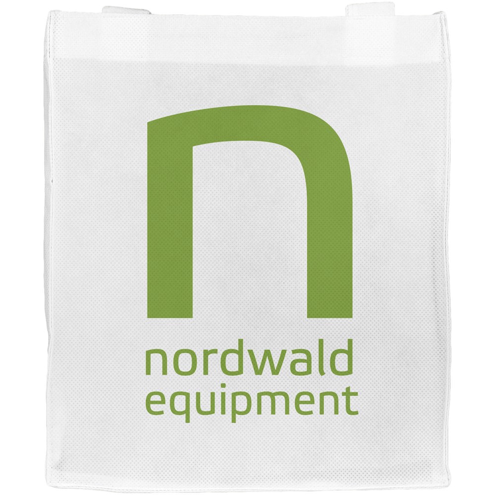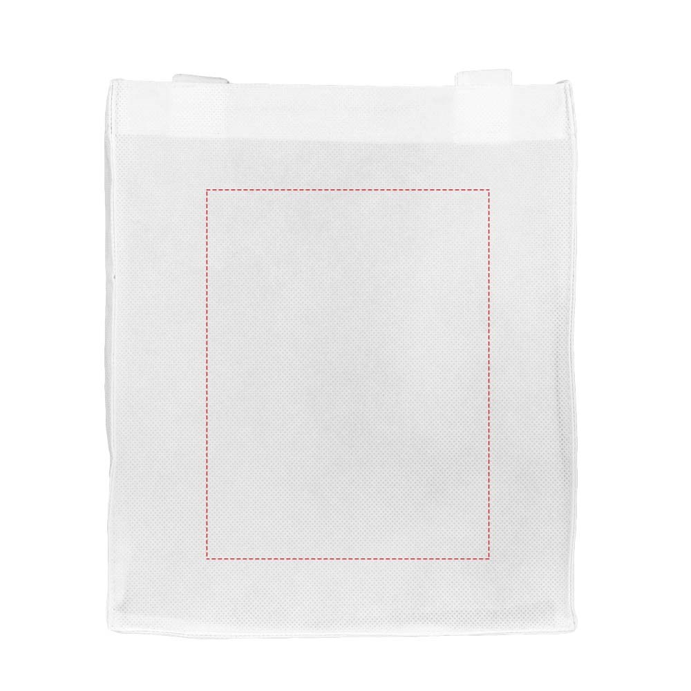 Open hoofdvak met dubbele draaggreep. Herbruikbaar. Het perfecte alternatief voor de plastic tas. Draaghoogte 29 cm.