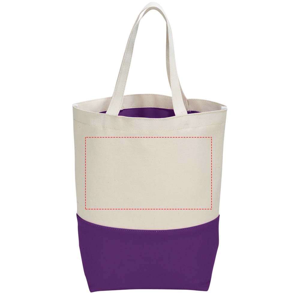 Katoenen boodschappentas beschikt over een aantrekkelijk contrastkleuren accent aan de onderzijde van de tas. De contrasterende kleur wordt herhaald aan de binnenzijde van de tas in de PVC voering. Deze voering laat zich eenvoudig reinigen en is perfect voor strand of zwemkleding. Voorzien van bodemplaat voor extra versteviging. Draaghoogte 18 cm.