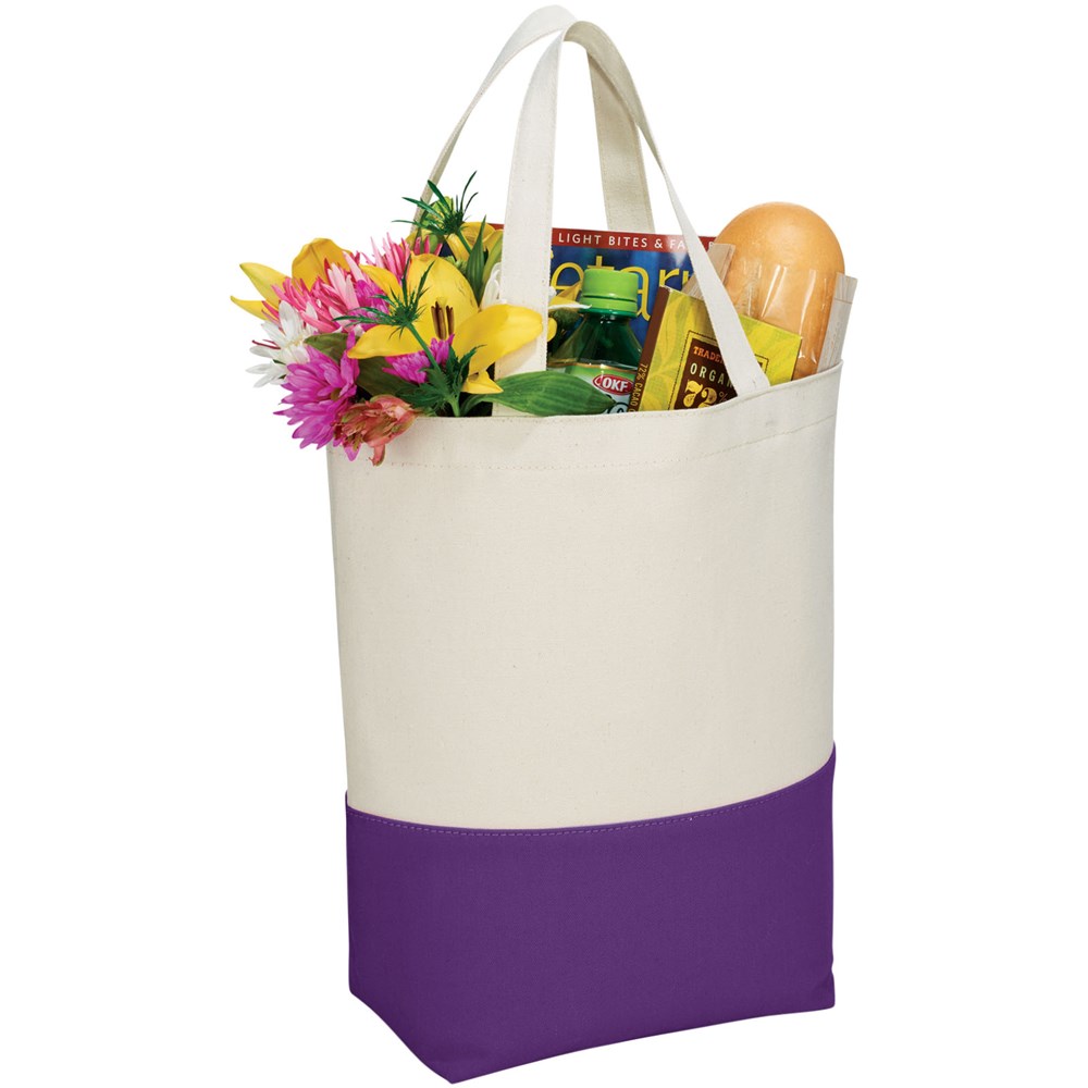 Katoenen boodschappentas beschikt over een aantrekkelijk contrastkleuren accent aan de onderzijde...meer