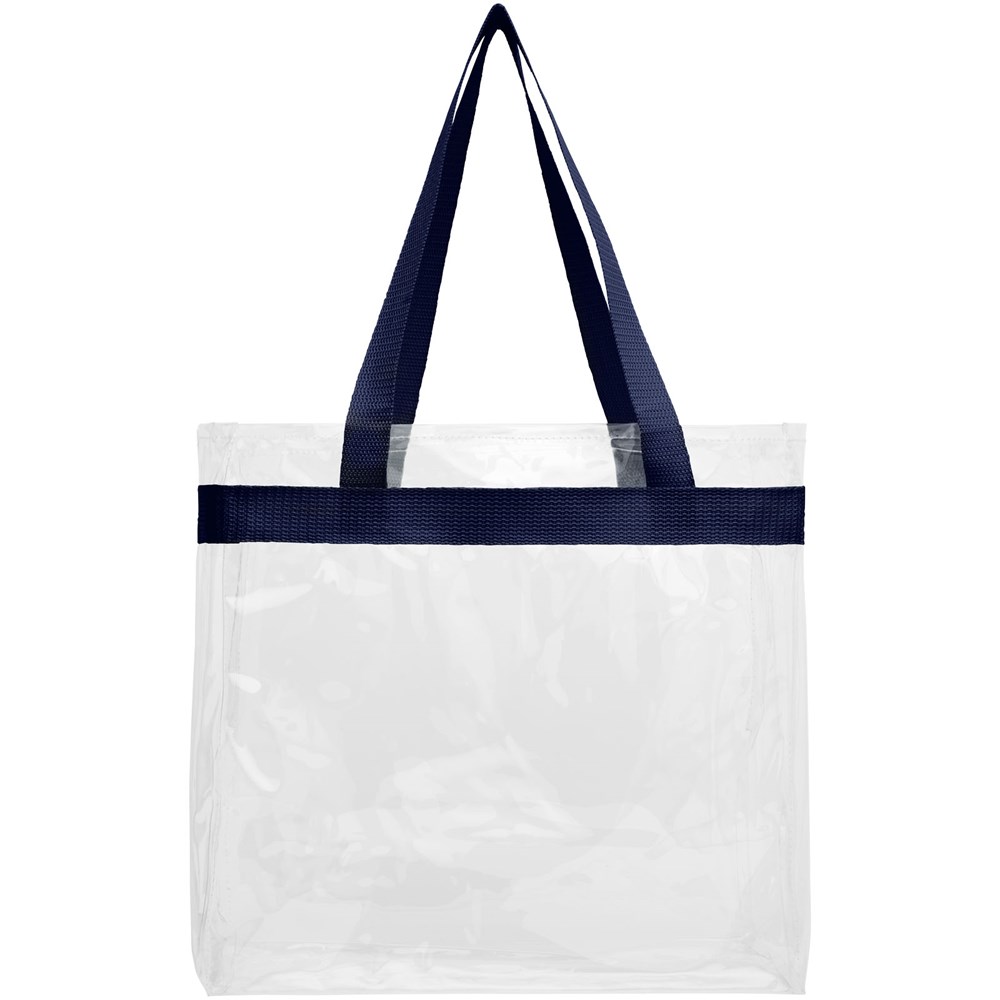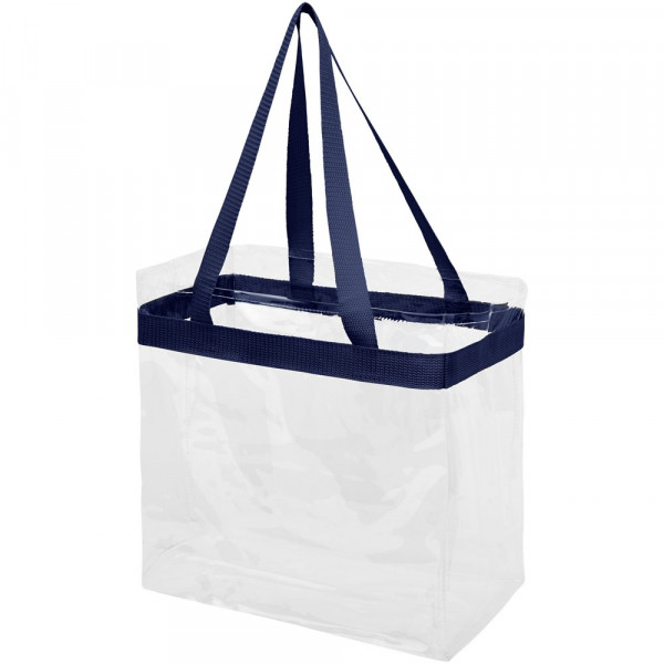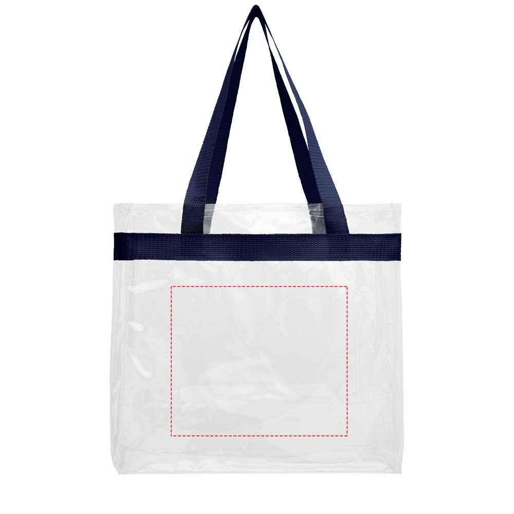 Transparante draagtas, perfect voor een middag in het stadion, een dagje op een festival of gewoon voor werk of school. Open hoofdvak met sportieve gaasrand en dubbele hengsels. Draaghoogte 27 cm. Accessoires niet inbegrepen.