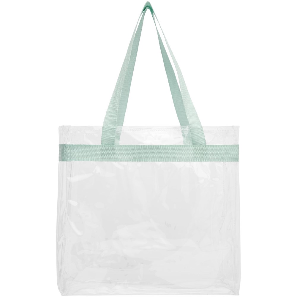 Transparante draagtas, perfect voor een middag in het stadion, een dagje op een festival of gewoon voor werk of school. Open hoofdvak met sportieve gaasrand en dubbele hengsels. Draaghoogte 27 cm. Accessoires niet inbegrepen.
