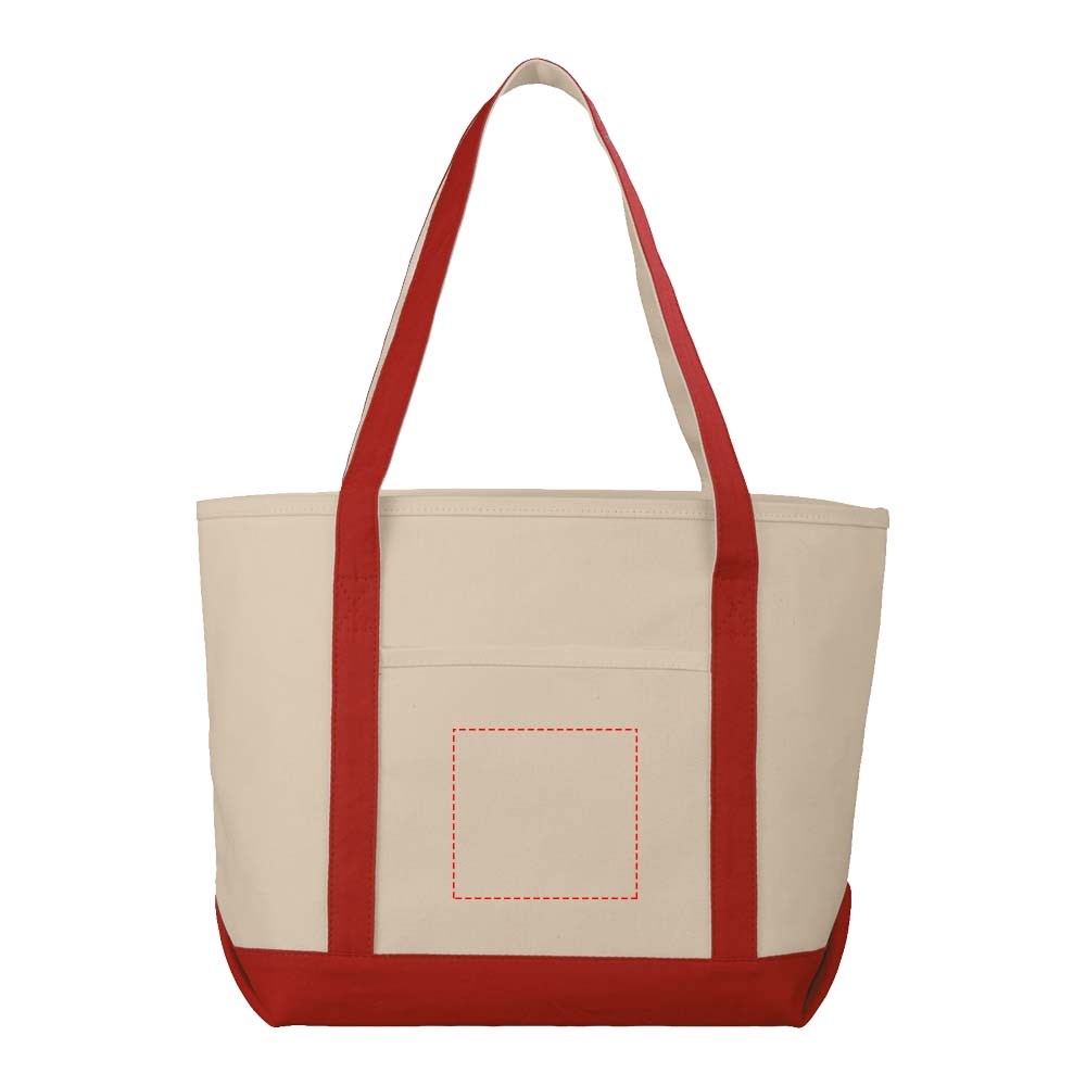 Katoenen klassieke boottas ideaal voor evenementen in de buitenlucht, perfect voor op reis. Zware uitvoering van stevig materiaal. Open hoofdvak. Open voorvak. Draaghoogte 30 cm.