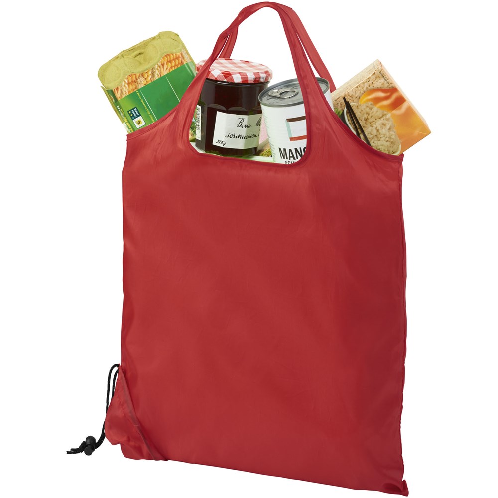 Polyester boodschappentas met een bijpassende hoes voor eenvoudig opbergen.meer