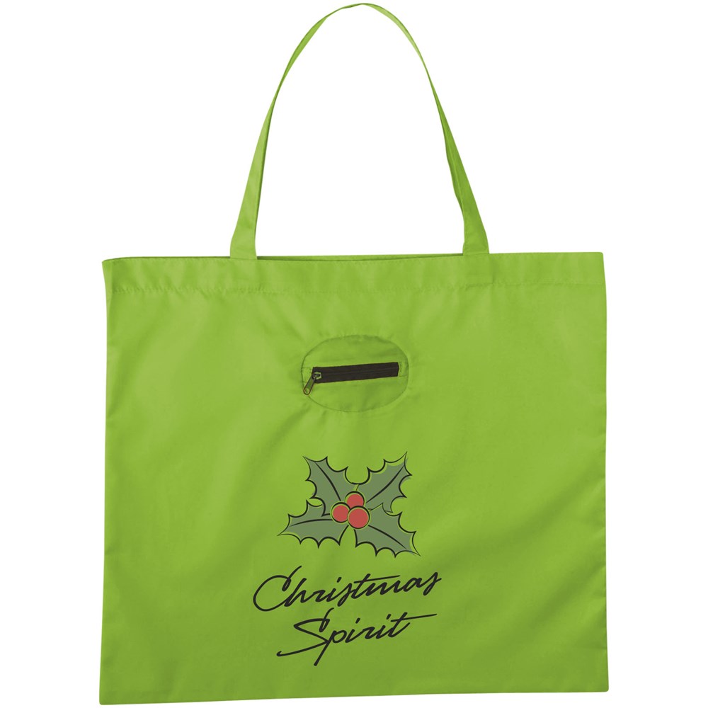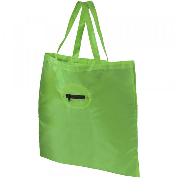 Opvouwbare polyester boodschappentas met een unieke manier van opvouwen. Pouch voorzien van rits...meer
