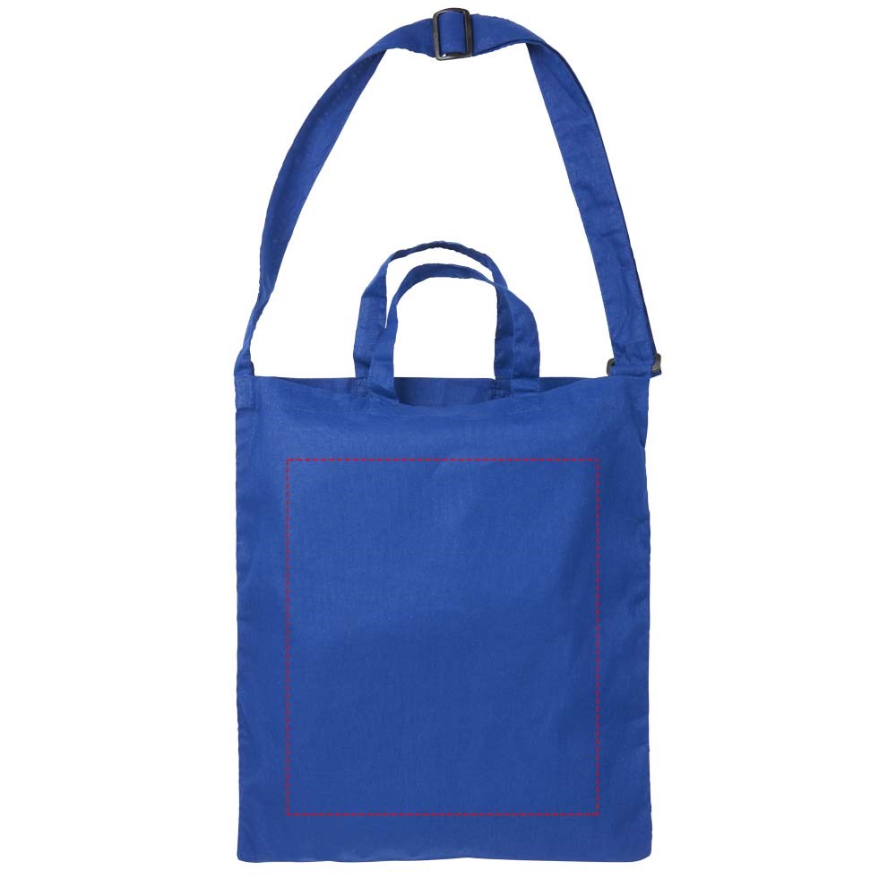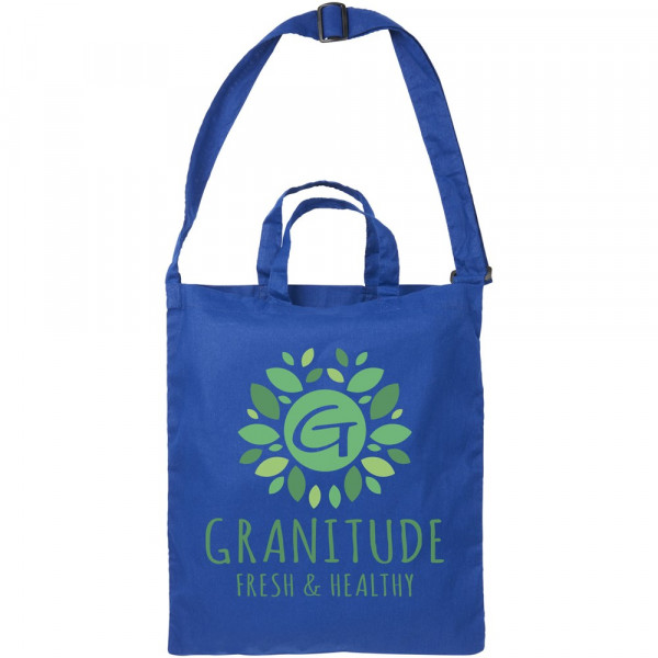 Katoenen draagtas met open hoofdvak. Inclusief verstelbare schouderband. Draaghoogte 17 cm.