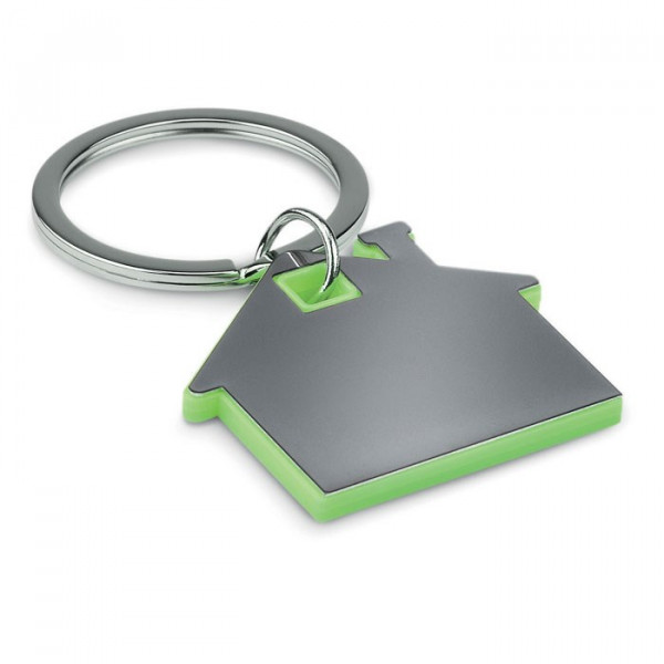 Huisvormige sleutelhanger van roestvrijstaal en ABS.