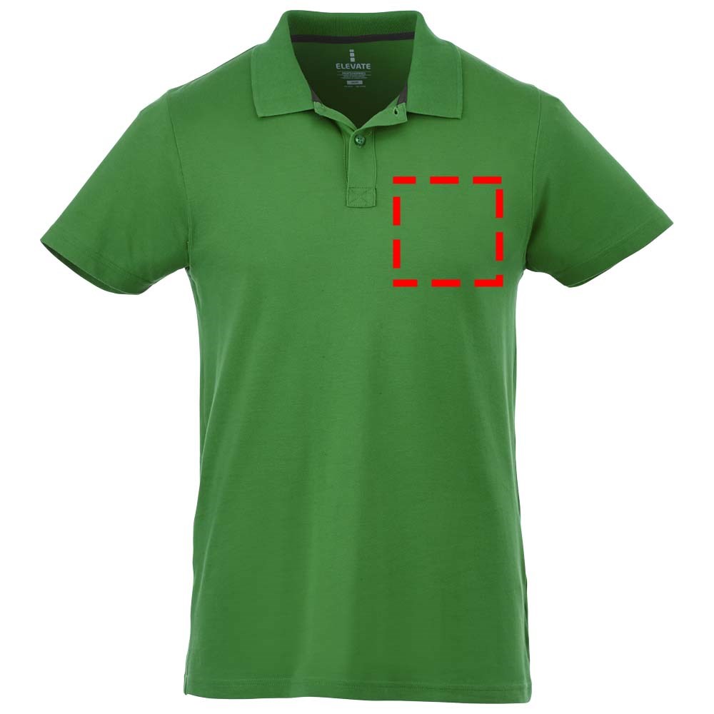 Vlakgebreide kraag. knopenlijst met twee knopen. Dubbele stiksels. Nektape in contrasterende kleur. Gegraveerde knopen. Transfer maatlabel voor extra comfort.