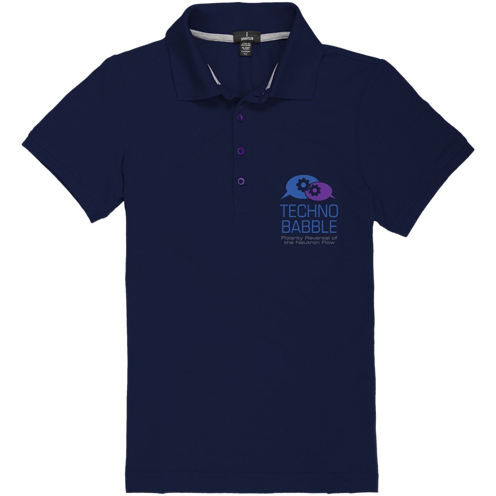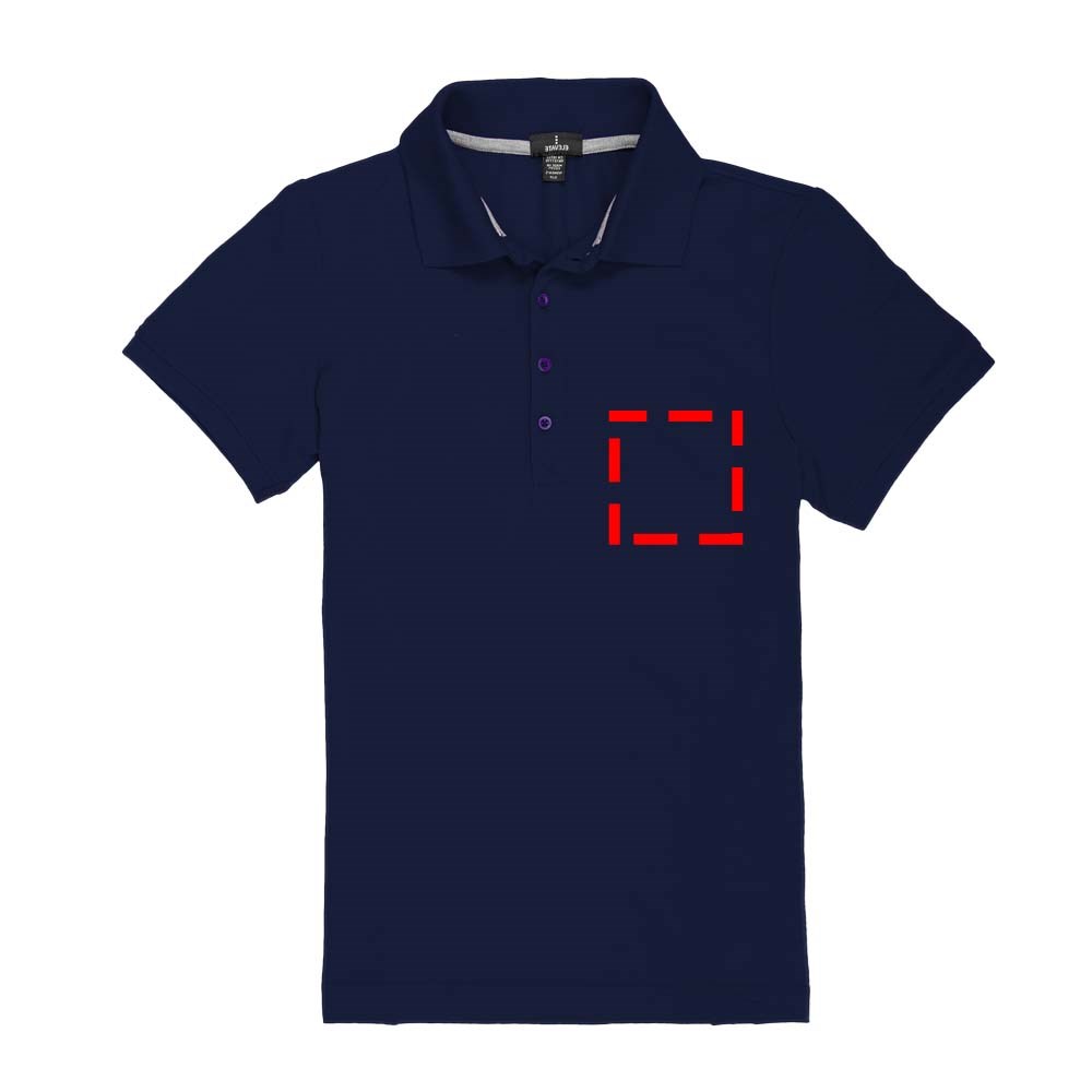 Wasbaar op 60 ˚ C. ISO 15797: voldoet aan de standaard van industrieele wasvoorschriften. UV bescherming: UPF 40+. Knopenlijst met vier knopen. Zijsplit. Vlakgebreide kraag. Plat gebreide rib mouw. Gegraveerde knopen. Nektape in contrasterende kleur. Transfer maatlabel voor extra comfort.