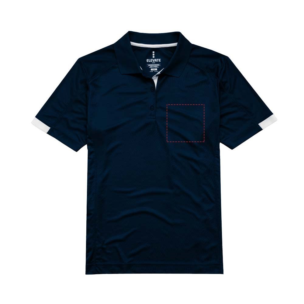 Vlakgebreide kraag. Knopenlijst met drie knopen. UV bescherming: UPF 15-39. Gevormde naden en flatteus getailleerde pasvorm. Binnenknopenlijst in contrastkleur. Nektape in contrasterende kleur. Flatlock stiksel. Gegraveerde knopen. Transfer maatlabel voor extra comfort.