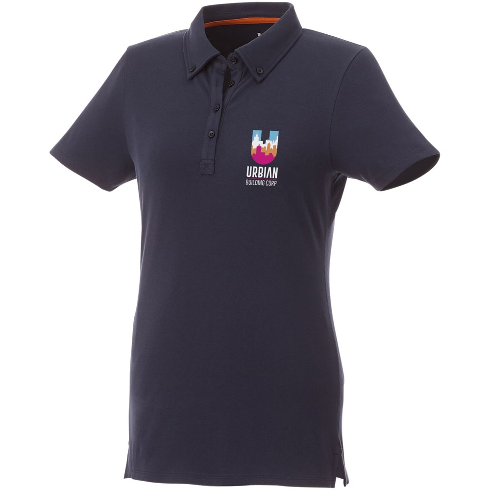 Boord in dezelfde stof. Stretch stof. Knopenlijst met vier knopen. Button-down kraag. Zijsplit. Nektape in contrasterende kleur. Halve maan. Gegraveerde knopen. Transfer maatlabel voor extra comfort.