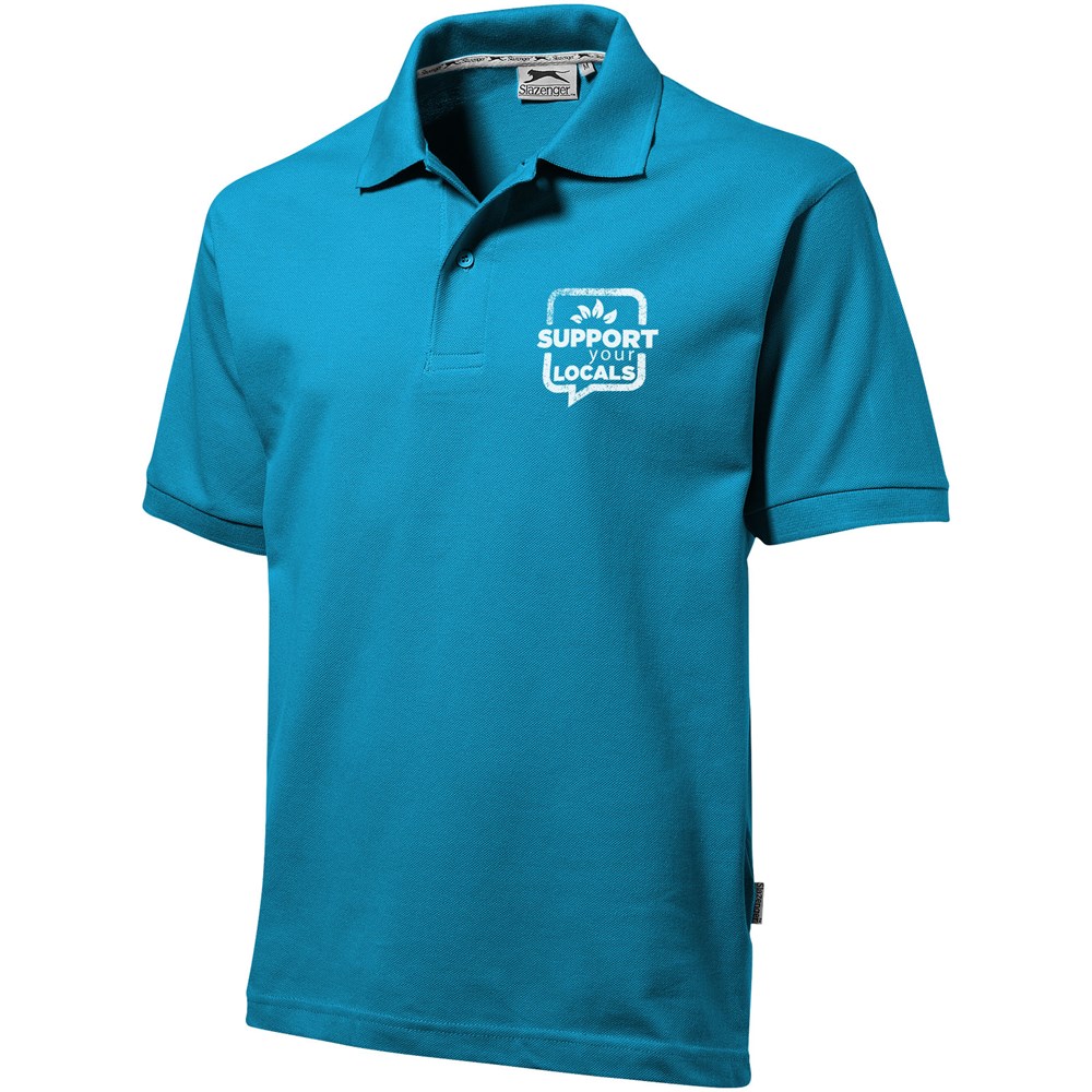 Vlakgebreide kraag. Plat gebreide rib mouw. Bedrukt visgraat nektape . knopenlijst met twee knopen. Gegraveerde knopen. Label in zijnaad. Transfer maatlabel voor extra comfort. Piqué van 90% katoen en 10% viscose.