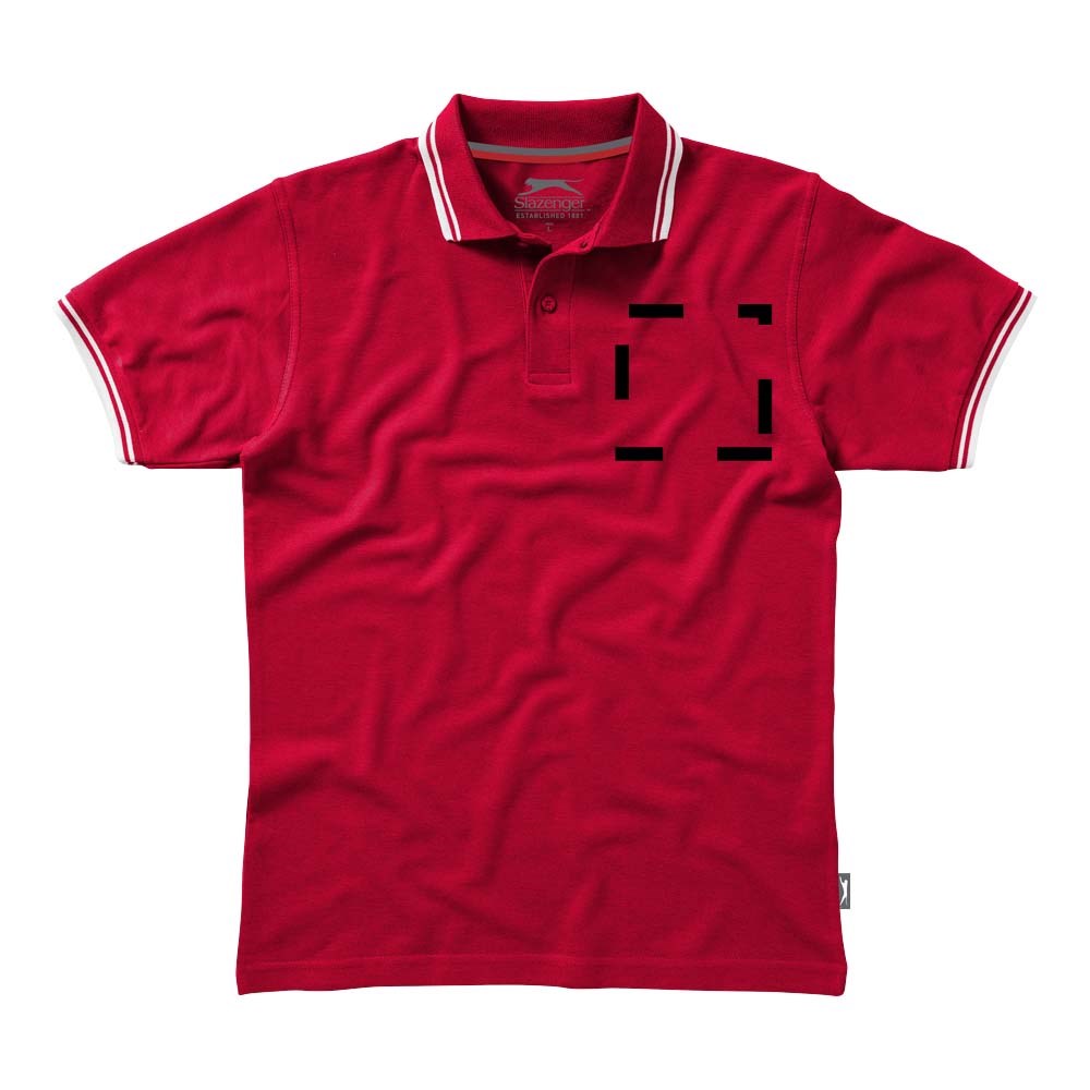 Vlakgebreide kraag. Plat gebreide rib mouw. Contrast gekleurde tipping op de kraag en mouwen. knopenlijst met twee knopen. Twee kleuren nektape. Gegraveerde knopen. Transfer maatlabel voor extra comfort. Label in zijnaad.