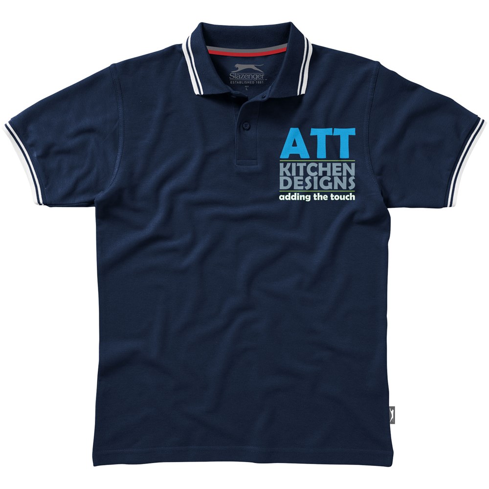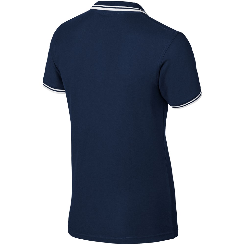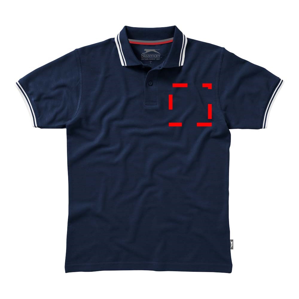 Vlakgebreide kraag. Plat gebreide rib mouw. Contrast gekleurde tipping op de kraag en mouwen. knopenlijst met twee knopen. Twee kleuren nektape. Gegraveerde knopen. Transfer maatlabel voor extra comfort. Label in zijnaad.