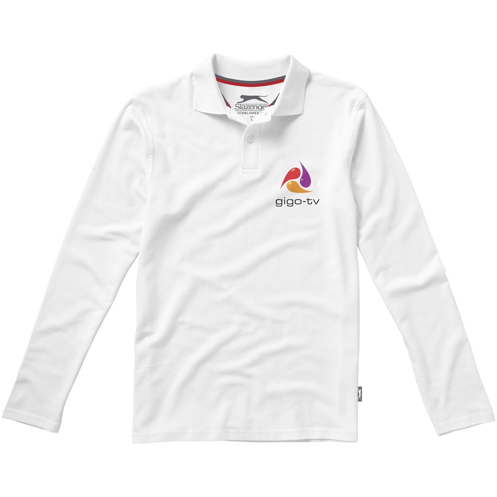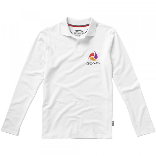 Vlakgebreide kraag. knopenlijst met twee knopen. Twee kleuren nektape. Gegraveerde knopen. Transfer maatlabel voor extra comfort. Label in zijnaad.
