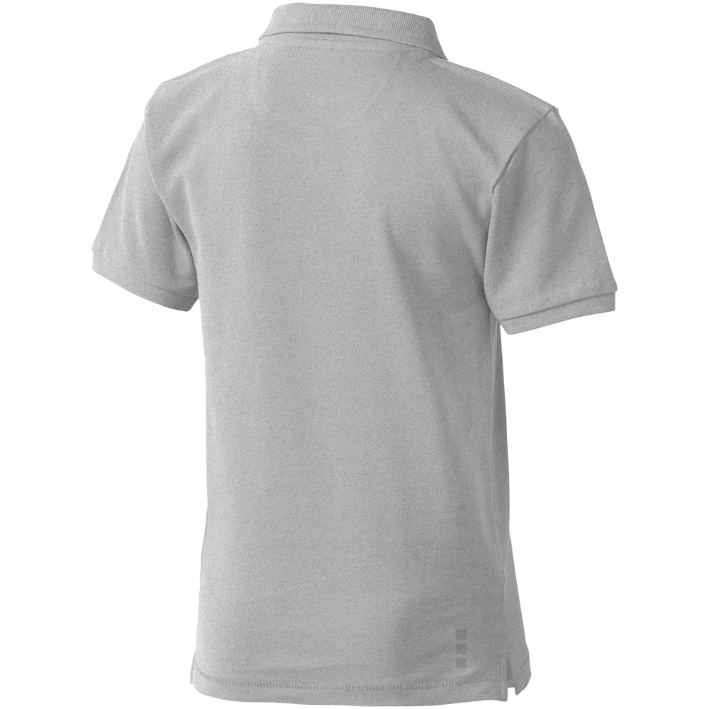Vlakgebreide kraag. Plat gebreide rib mouw. knopenlijst met twee knopen. Pick steek details. Satijnen nektape. Zijsplit met satijn tape aan binnenzijde. Halve maan. Doorlopende schoudernaad met kettingstiksels. Gegraveerde knopen. Transfer maatlabel voor extra comfort.