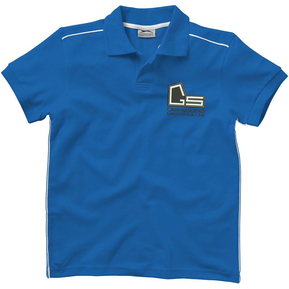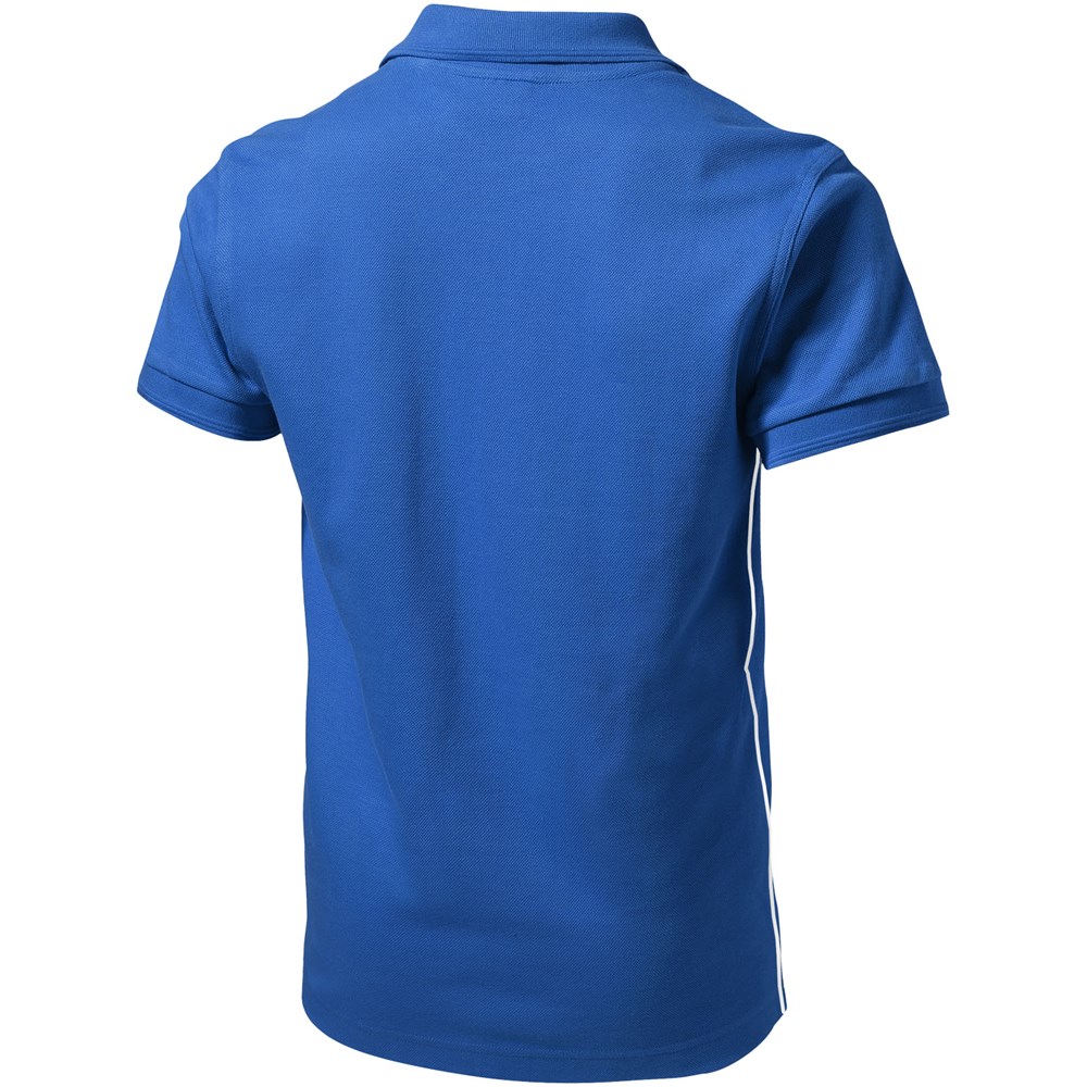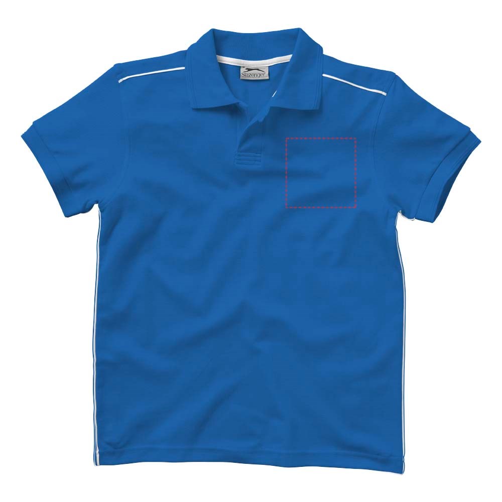 Vlakgebreide kraag. Contrast gekleurde tipping. Knopenlijst met één knoopje. Piping details. Nektape in contrasterende kleur. Gegraveerde knopen. Transfer maatlabel voor extra comfort.