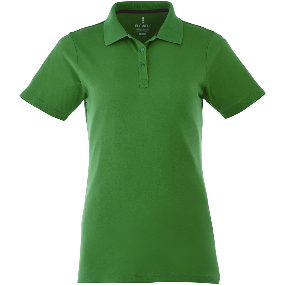 Vlakgebreide kraag. Plat gebreide rib mouw. Knopenlijst met drie knopen. Dubbele stiksels. Nektape in contrasterende kleur. Gegraveerde knopen. Transfer maatlabel voor extra comfort.